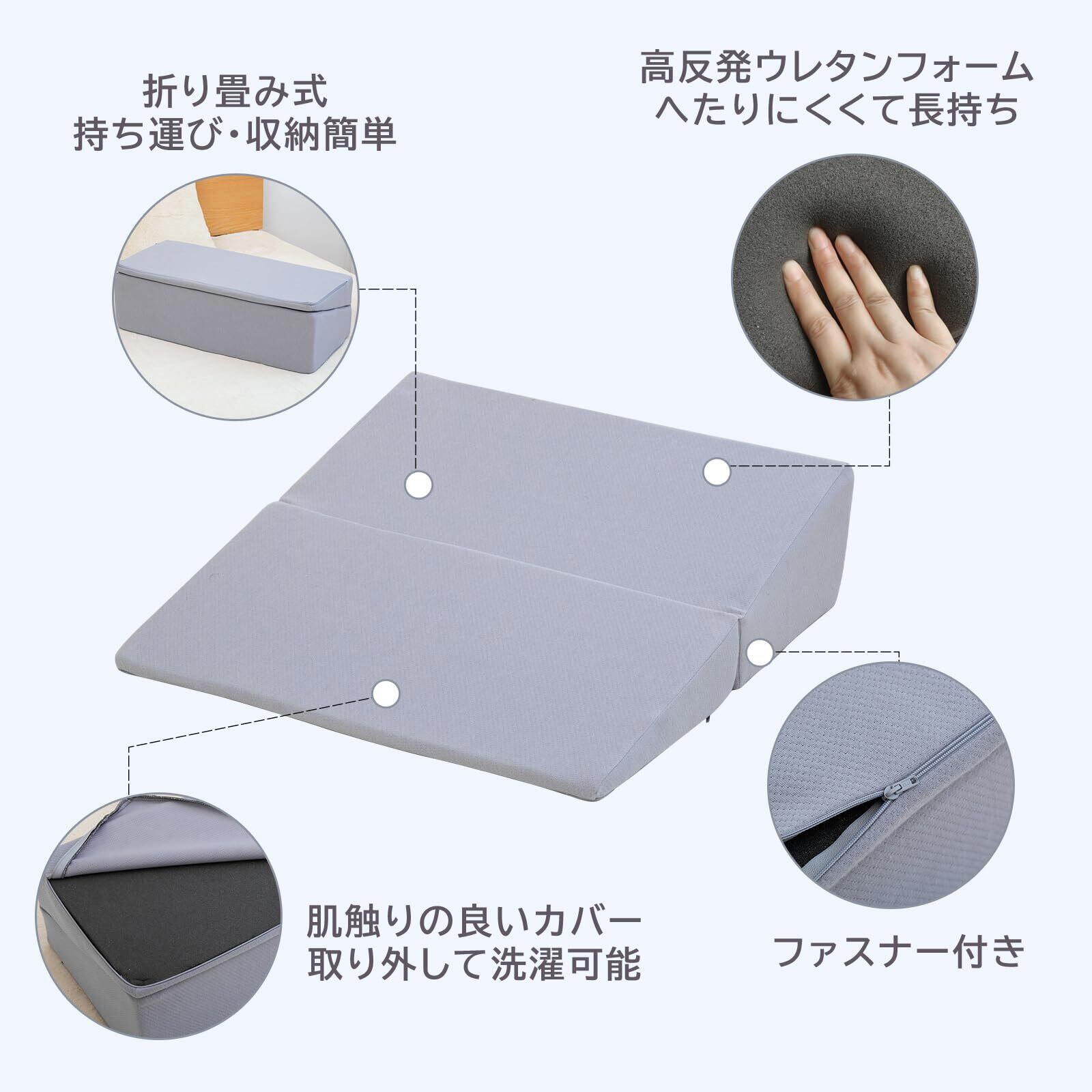 IMIEE 三角クッション 三角枕 背もたれ 腰枕 傾斜枕 足まくら なだらか枕 斜めマット 横向き寝 クッション 逆流性食道炎 体位変換 二つ折り枕 腰クッション 足枕 高反発 読書用 妊婦 お年寄り 体圧分散 体位変換 テレビ枕 カバー洗える 快眠サポート (グレー)