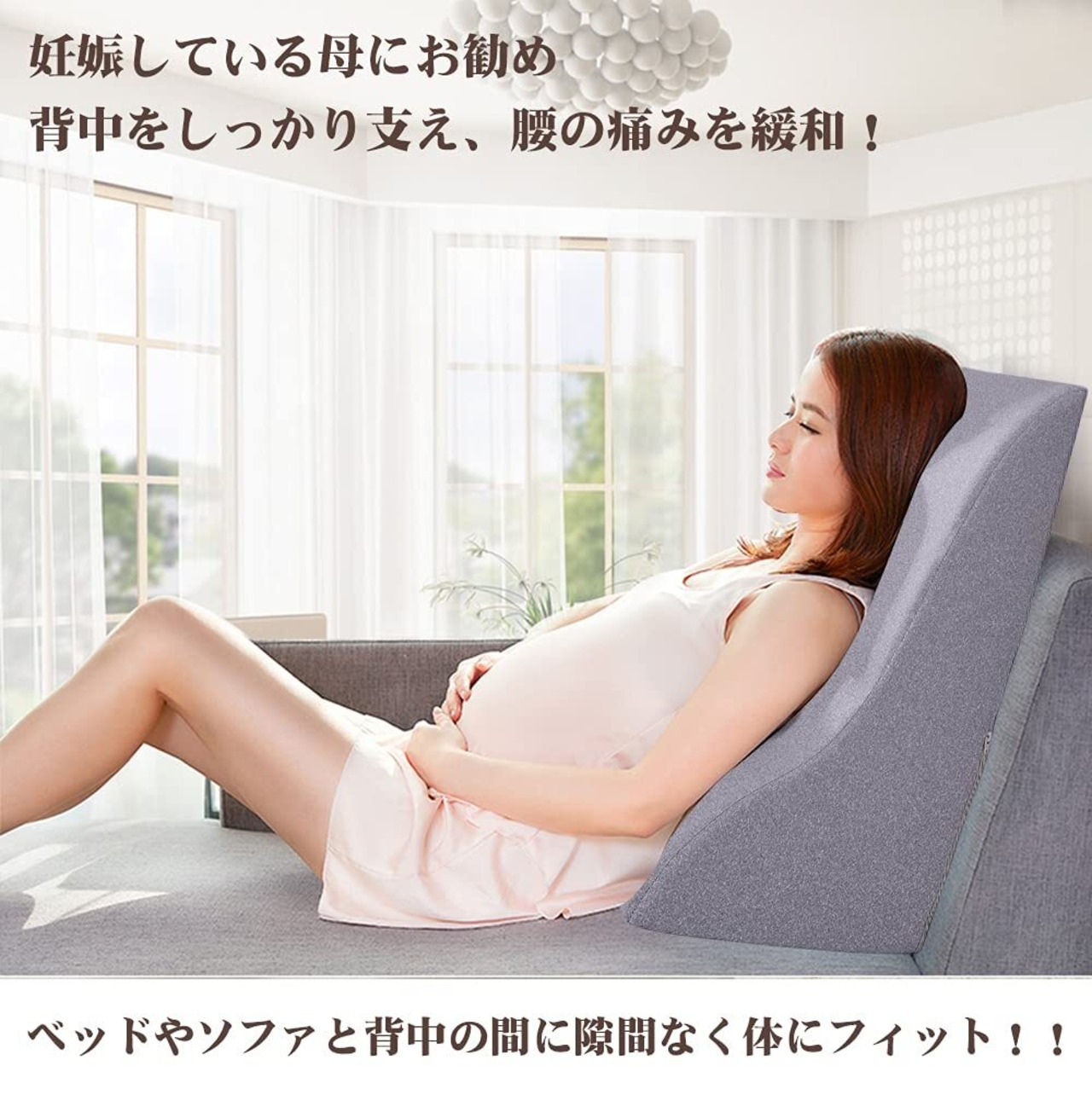 【多機能読書クッション】壁、ベッド、ソファにもたれて、本を読んだっり、テレビを見たり。ごろっと横になったり、うつ伏せしたりしてスマホを見ても丁度良い角度です。妊婦さんは仰向けで寝るのが大変なので、このクッションを使ってちょっと横になりたい時にとても便利です。リラックス時に、足を上げてむくみを解消する足枕も使えます。