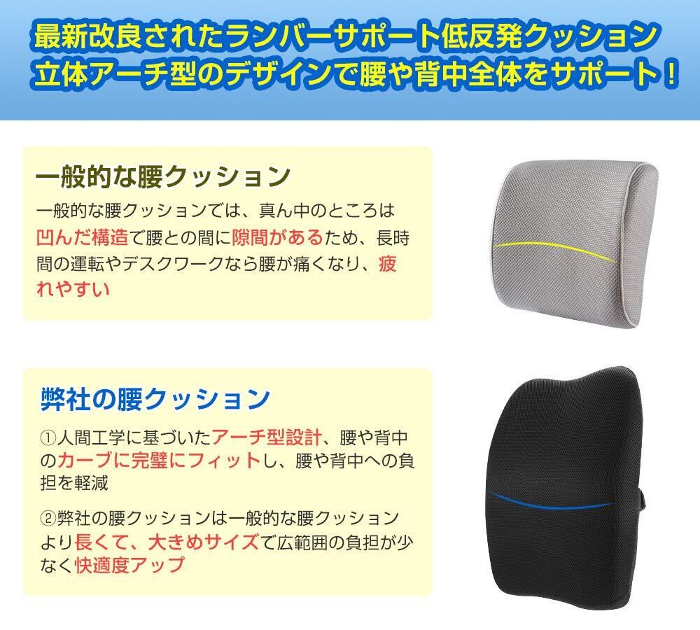 【人間工学に基づいたアーチ型デザイン】人間工学に基づいた設計が腰や背中のS字カーブをしっかり支えます。腰をしっかり支えるので背筋が自然に伸びて、腰への負 担を減らします。【使用対象・場所】毎日のデスクワークや長距離運転などが多い方、座り心地がよくなりたい方にオススメ。車中や自宅、オフィスなどいろいろな用途、場所でご使用いただけます。