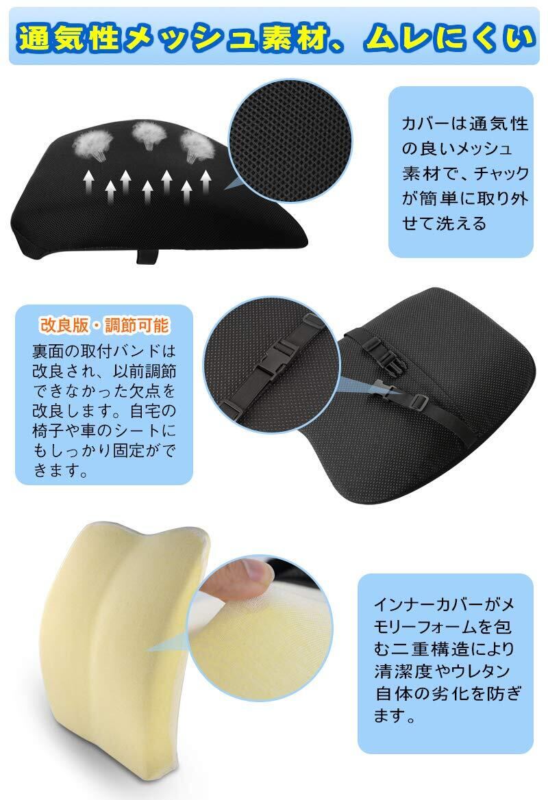 【通気性抜群でムレにくい、取り付けバンドを改良】カバーには通気性の良いメッシュ素材を採用し、長時間の使用でも蒸れにくいです。また、裏面の取り付けバンドを改良し、以前調節できなかった欠点を克服しました。ご自宅や職場の椅子や車のシートにしっかりと固定できます。