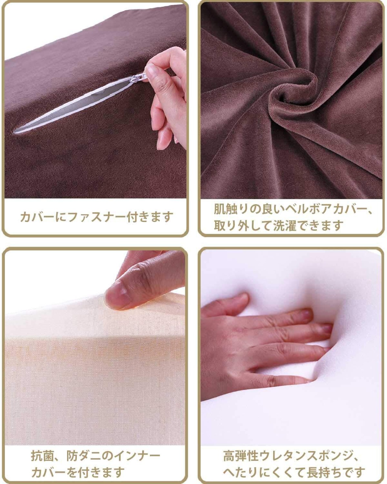 【数量限定】Meiz 腰枕 腰痛クッション 背あて ランバーサポート 三角型 就寝用 足上げ 体圧分散 体位変換 逆流性食道炎 高齢者向け テレビ枕 なだらか枕 ベルボア生地 カバー洗濯可 ブラウン