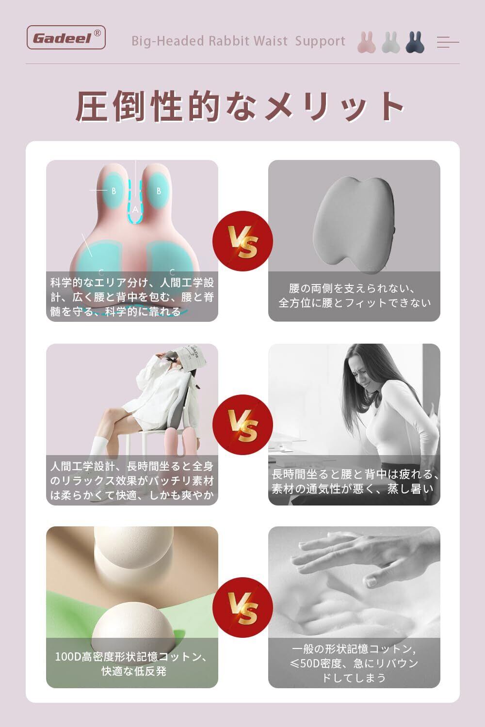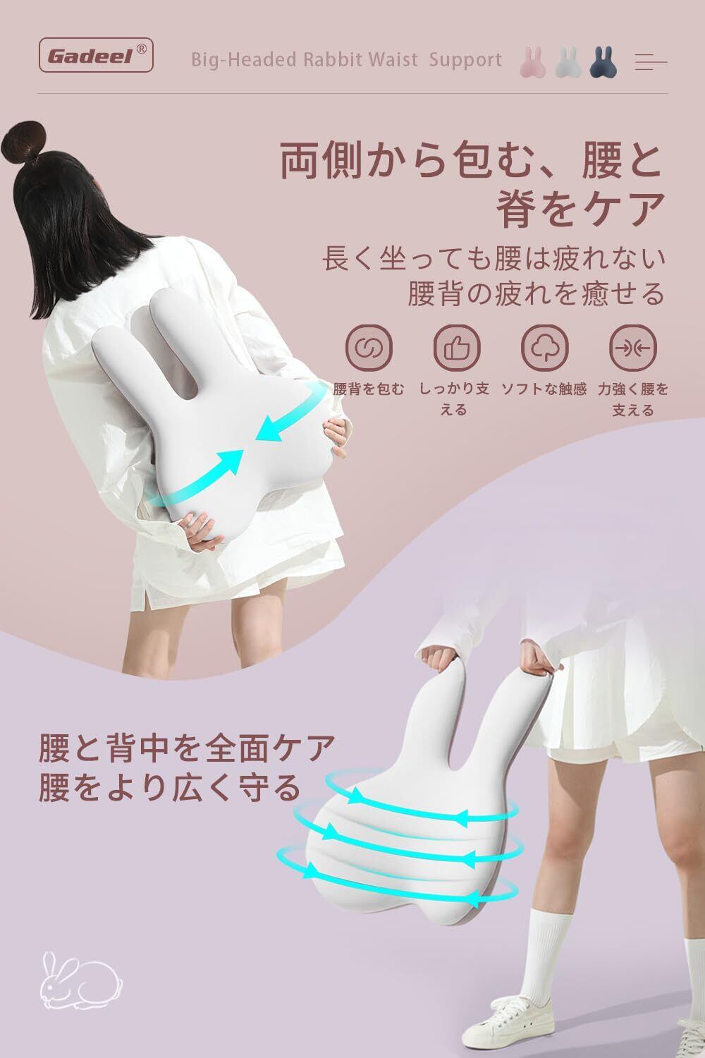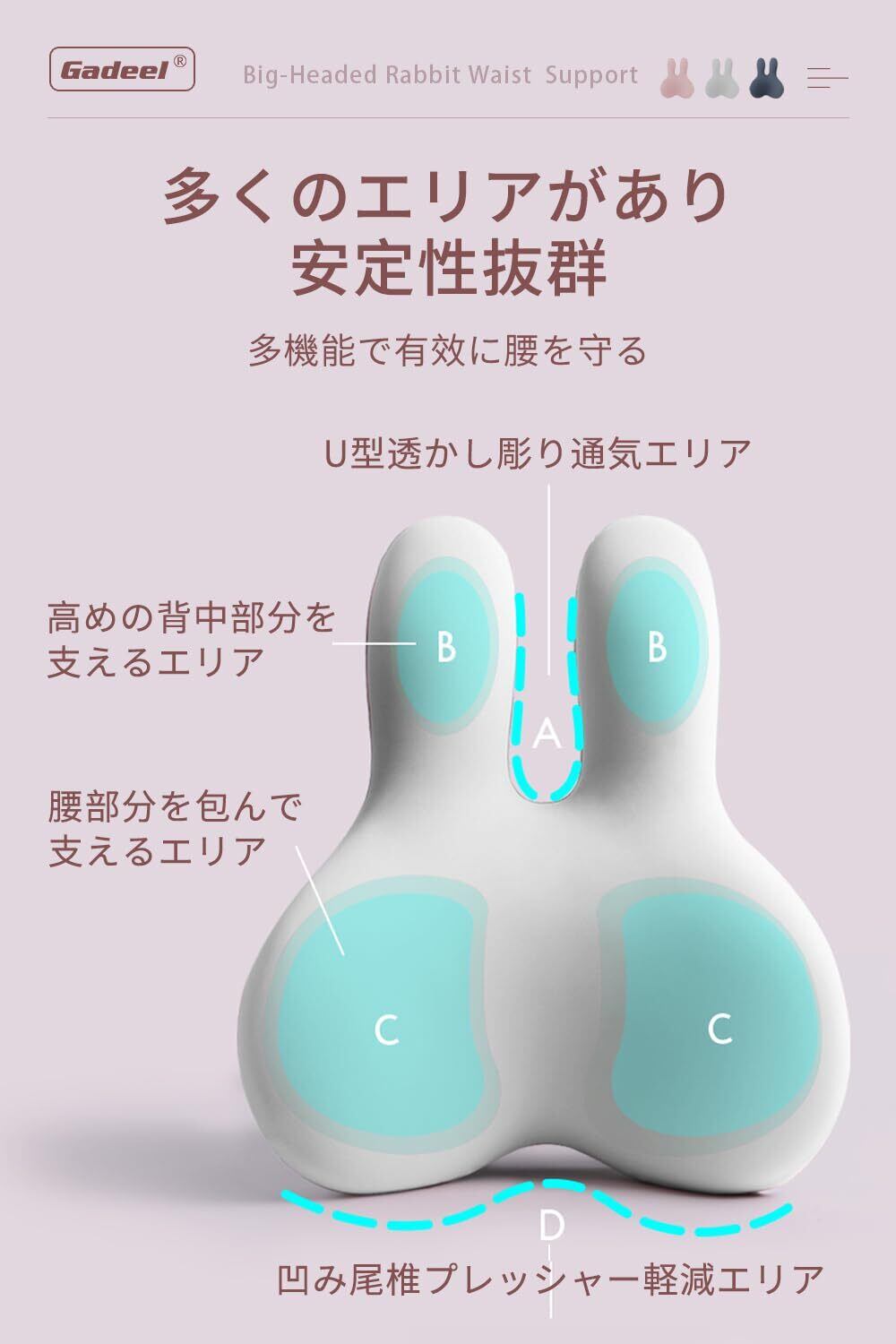 【人間工学とかわいい外観の組み合わせ】腰痛クッションのデザインは革新的に設計されており、市場に出回っている従来の腰痛クッションとは異なり、人間工学に基づいたデザインとかわいいウサギの顔の低反発サポートランバークッションの組み合わせに基づいて、外観と機能を兼ね備えたクッションであり、この腰クッションはゾーンハグデザインを採用し、ウサギの顔は腰の曲線にフィットし、 腰が自然にまっすぐになるように。ソフトなし、ハードウエストプロテクションなしがより包括的で、ウエストへの負担を軽減します。