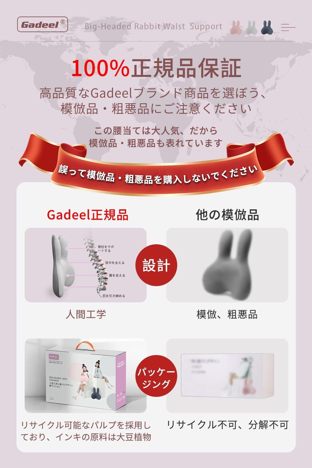 Gadeel 腰痛クッション 低反発 ランバーサポート 背もたれクッション 人間工学 通気性 かわいいリラックスクッション 取付バンド調節可能 カバー洗える 使用場所 オフィス/車中/自宅/プレゼント用(グレー)