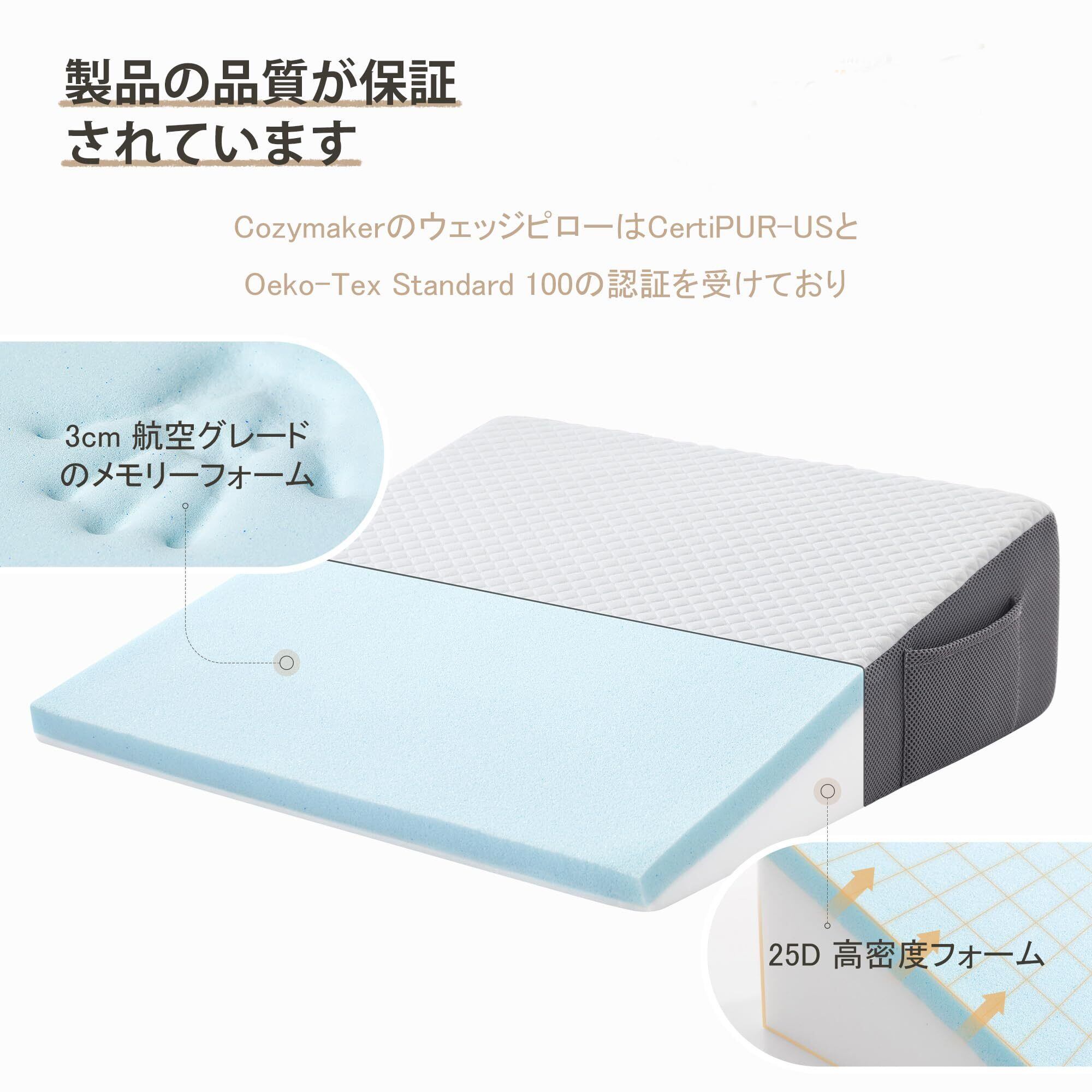 【人間工学に基づいたデザイン】3cm航空グレードのメモリーフォームトップと16cm 25D 高密度グレードのフォームコアを使用したCozymaker三角枕は、枕の全体的な柔らかさと高さは非常に適度であり、全身の圧力を和らげることができ、より良い快適さと適切なサポートを確保することができますので、それを使用すると、長い睡眠で疲れないように、アップグレードされた人間工学に基づいたデザインと組み合わせる。