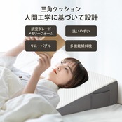 三角クッション 三角枕 背もたれ クッション テレビ枕 高反発メモリーフォーム 傾斜枕 背もたれクッション 腰枕 低反発+高反発 2層構造 逆流性食道炎 枕 いびき対策 睡眠サポート なだらか枕 足上げ 読書用 お年寄り老人用