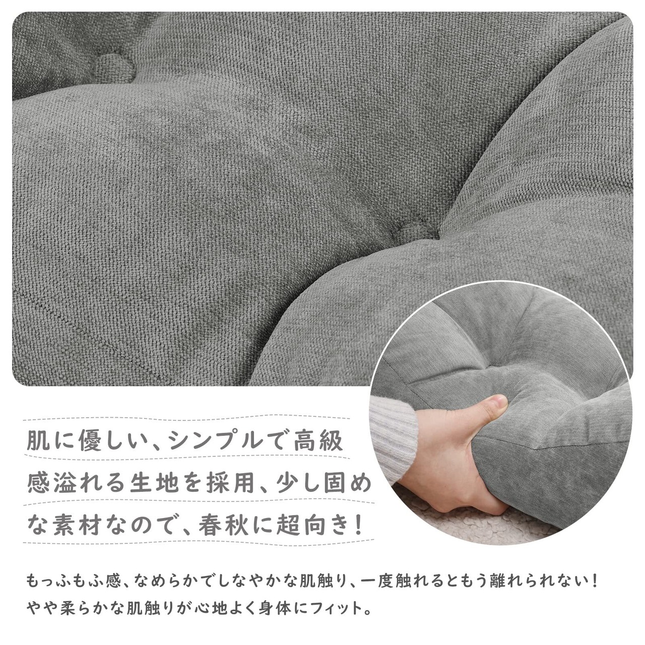 肌に優しいシンプルな無地生地カバー&ビンホール設計:カバーは肌に優しいシンプルな無地素材使用、肌に敏感の方でも快適にお使い頂けます。もっふもふ&ふわふわ感、なめらかでしなやかな肌触り、一度触れるともう離れられない。シンプルな無地素材で、高級感を演出してくれます。少し固めな素材なので、春秋に超向き!中材の片寄りを防ぐために、製品にはピンホールを設置いたします。綿の形が安定し、へたりにくいので長くご愛用頂けます。