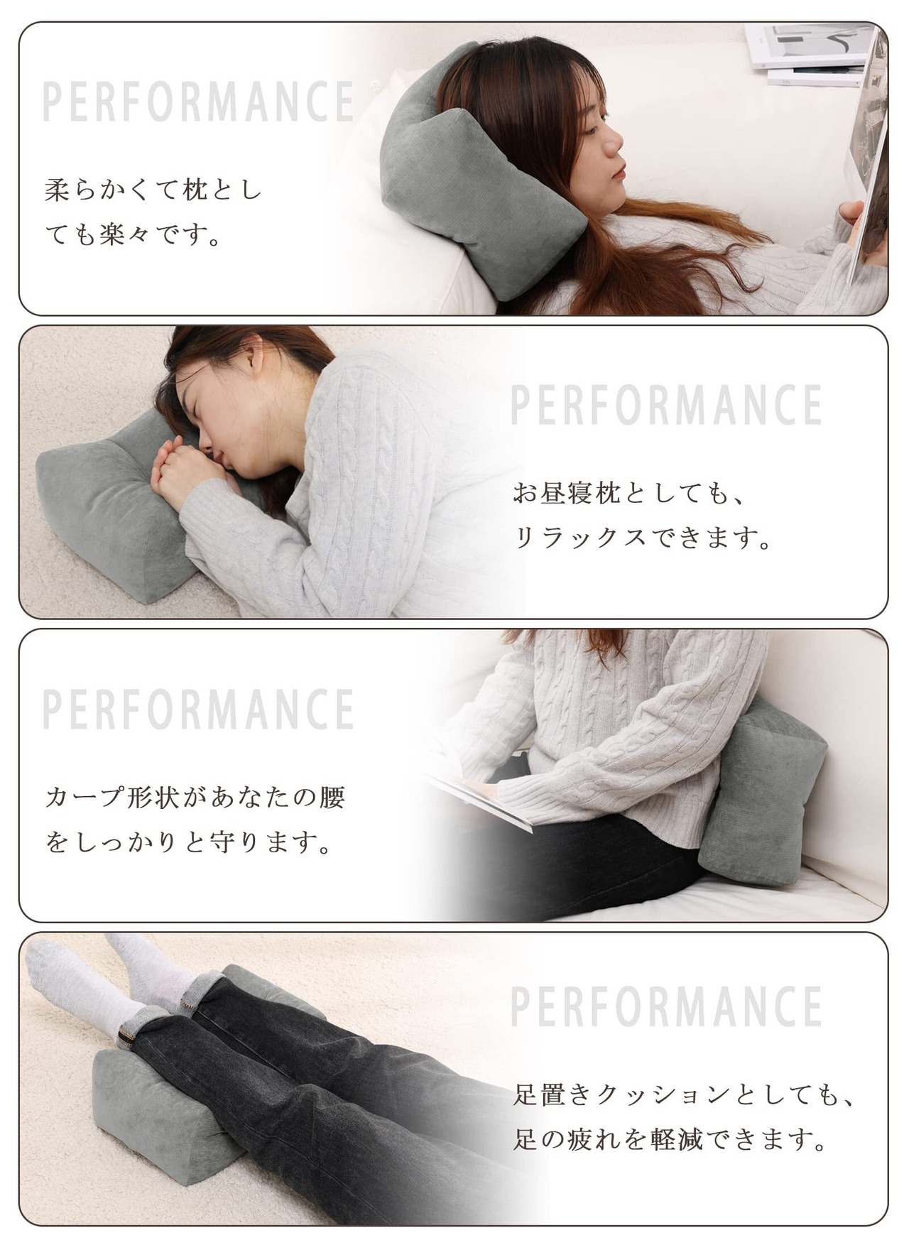 TanYoo 腰枕 腰痛クッション 背もたれクッション 腰当てクッション 低反発 ベッドバックサポート 多機能腰まくら ランバーサポート 腰楽 安眠枕 体圧分散 足枕 もちもち カバー洗える オフィス/自宅/車用 (少し硬め無地グレー)
