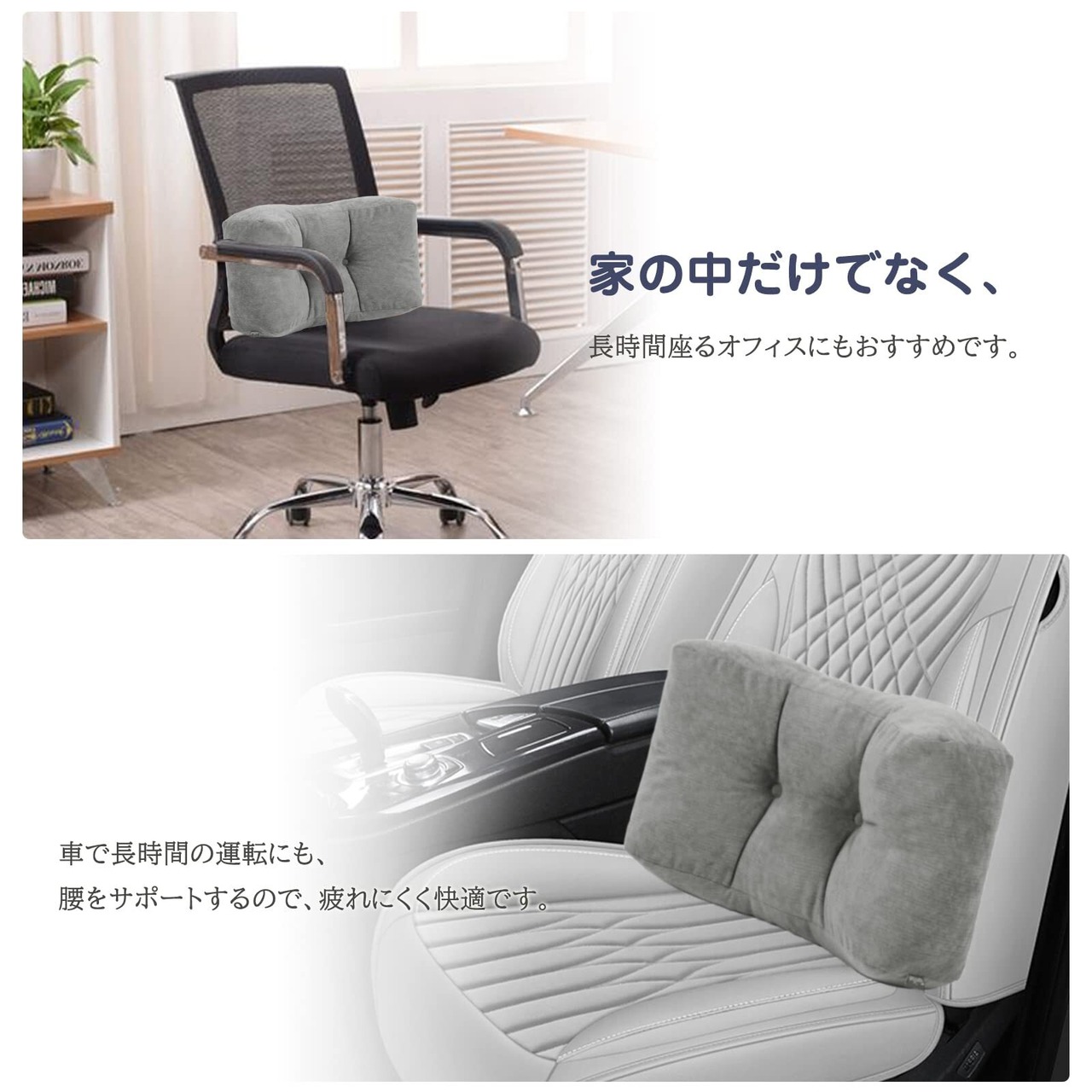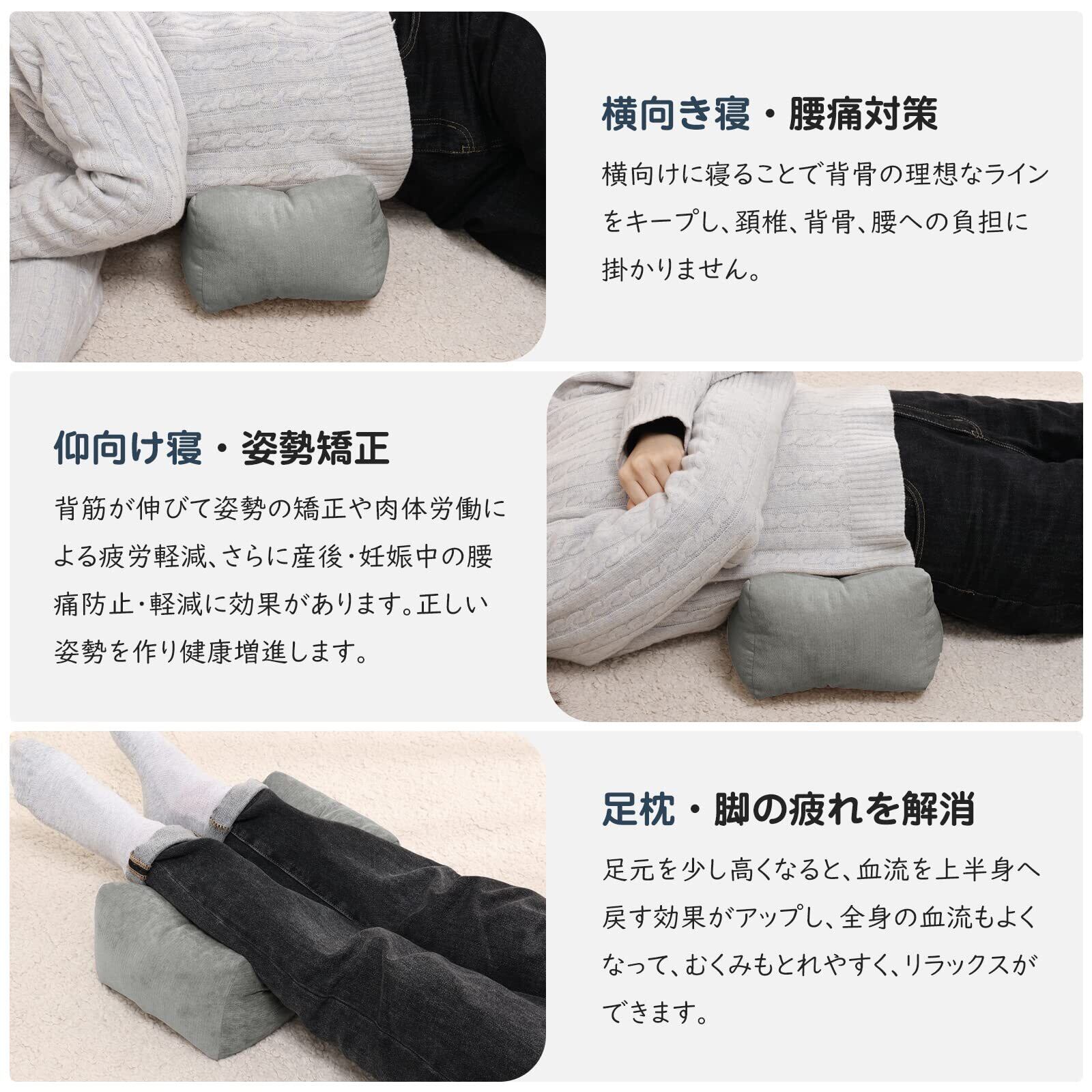 用途が広い:一般的には、座っている時に背もたれと背中の間に隙間があると、そのままでいったら、腰が疲れて徐々に猫背になりがちです。この背もたれクッションを椅子と腰の間に置くことで、隙間を埋めて、腰を正しいS字カーブに持たせます。長時間座っても疲れにくく、腰痛や背中の負担を軽減してくれ、腰痛の予防にもなります!車中や自宅、オフィスなどいろいろな用途、場所でご使用いただけます。仰向け寝・横向き寝対応、足上げにも、膝下や足元に入れていただいたり、使い方次第でいろいろと体が楽になる方法があるでしょう。