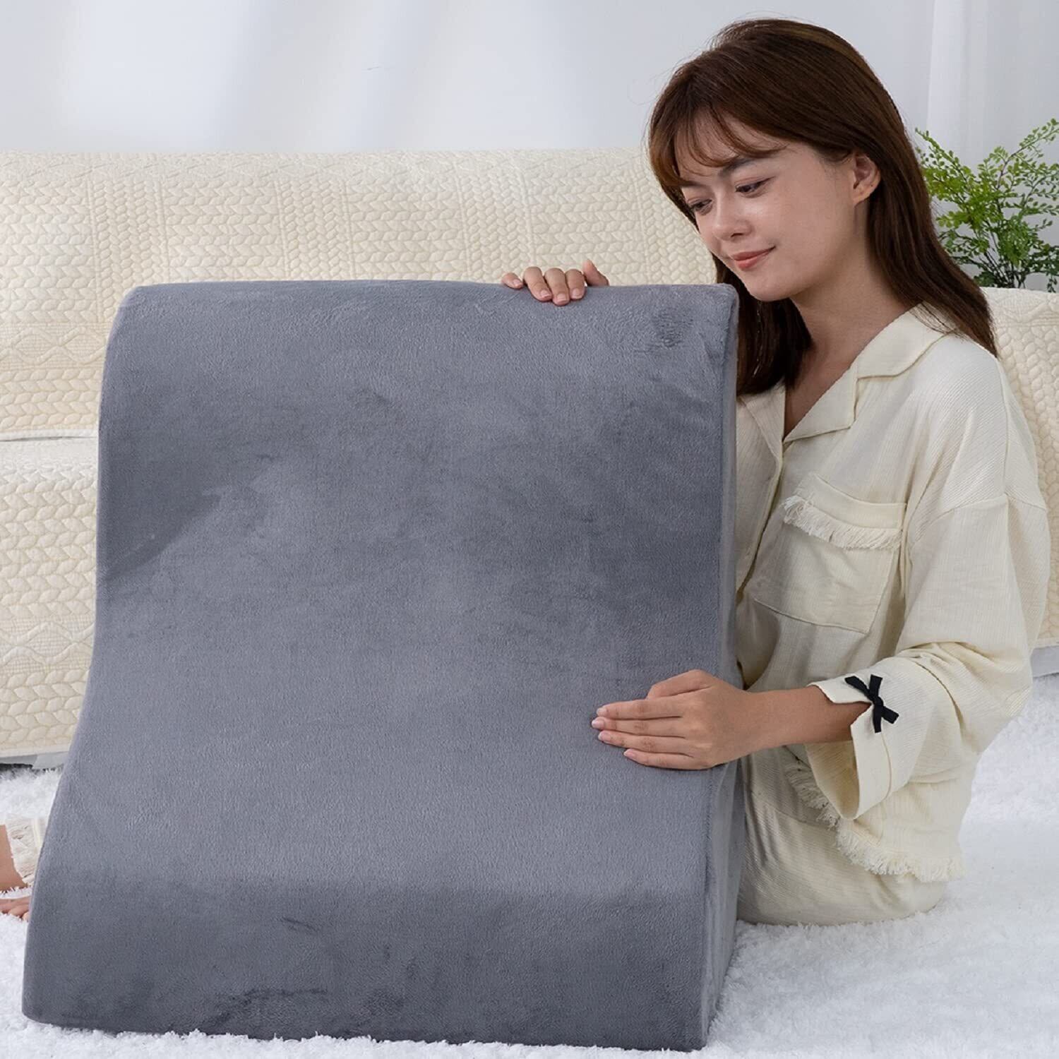 【数量限定】AngQi 三角クッション 三角枕 腰枕 逆流性食道炎 枕 背もたれ クッション なだらか 傾斜枕 ベルボア生地 体にフィット 腰クッション 読書用 妊婦用 お年寄り 老人用 グレー