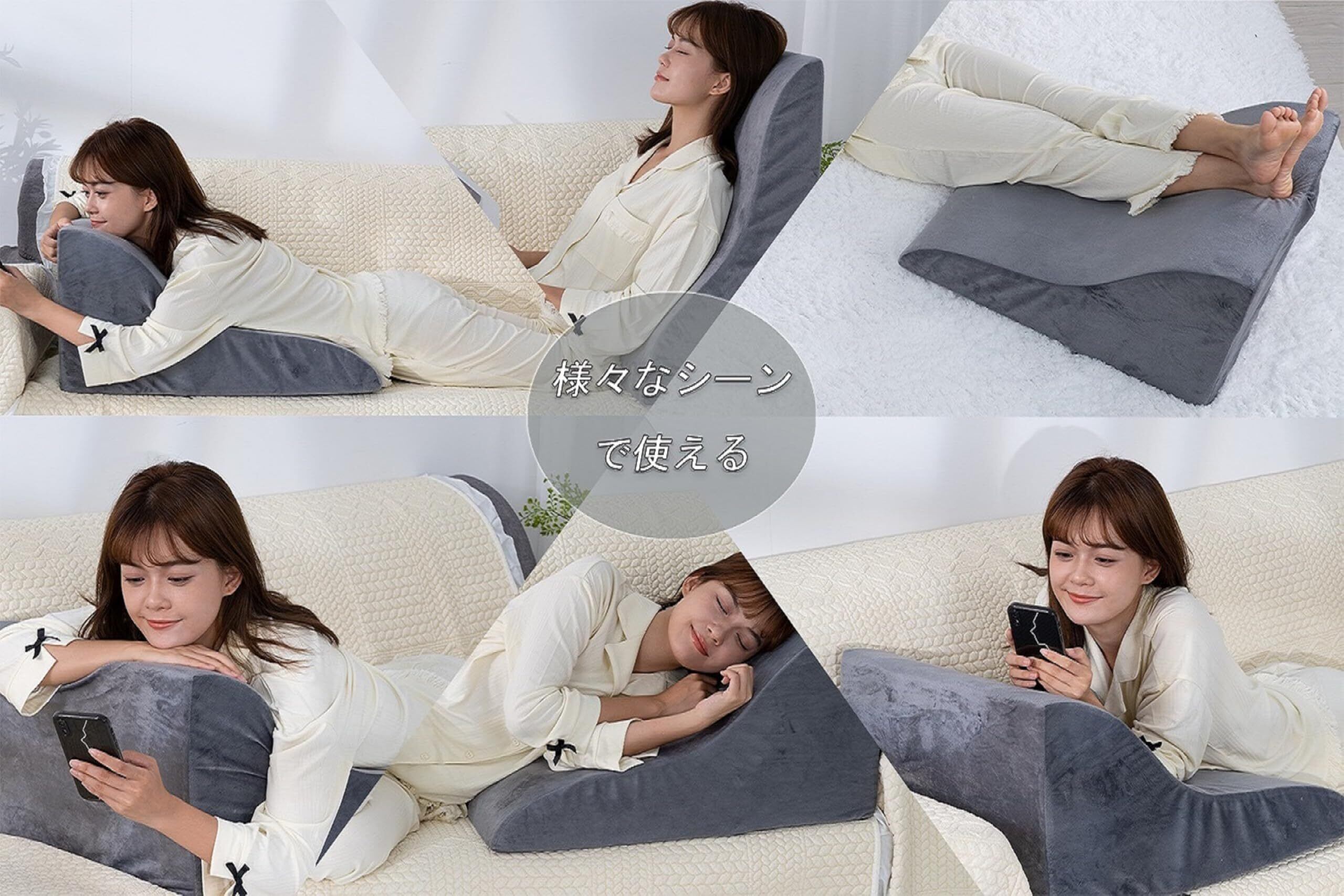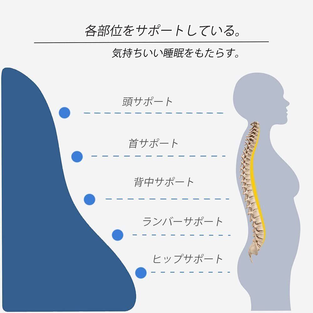 【様々なシーンで活躍する】縦置きと横置きの自由転換により、利用姿勢が豊富になり、足枕や腰枕、背もたれクッションなどとして、様々なシーンで使用できます。また、なだらかな傾斜で肩から支えることにより、首に負担がかからず快適な寝心地を実現でき、普通の枕にはない安定感も実感できます。