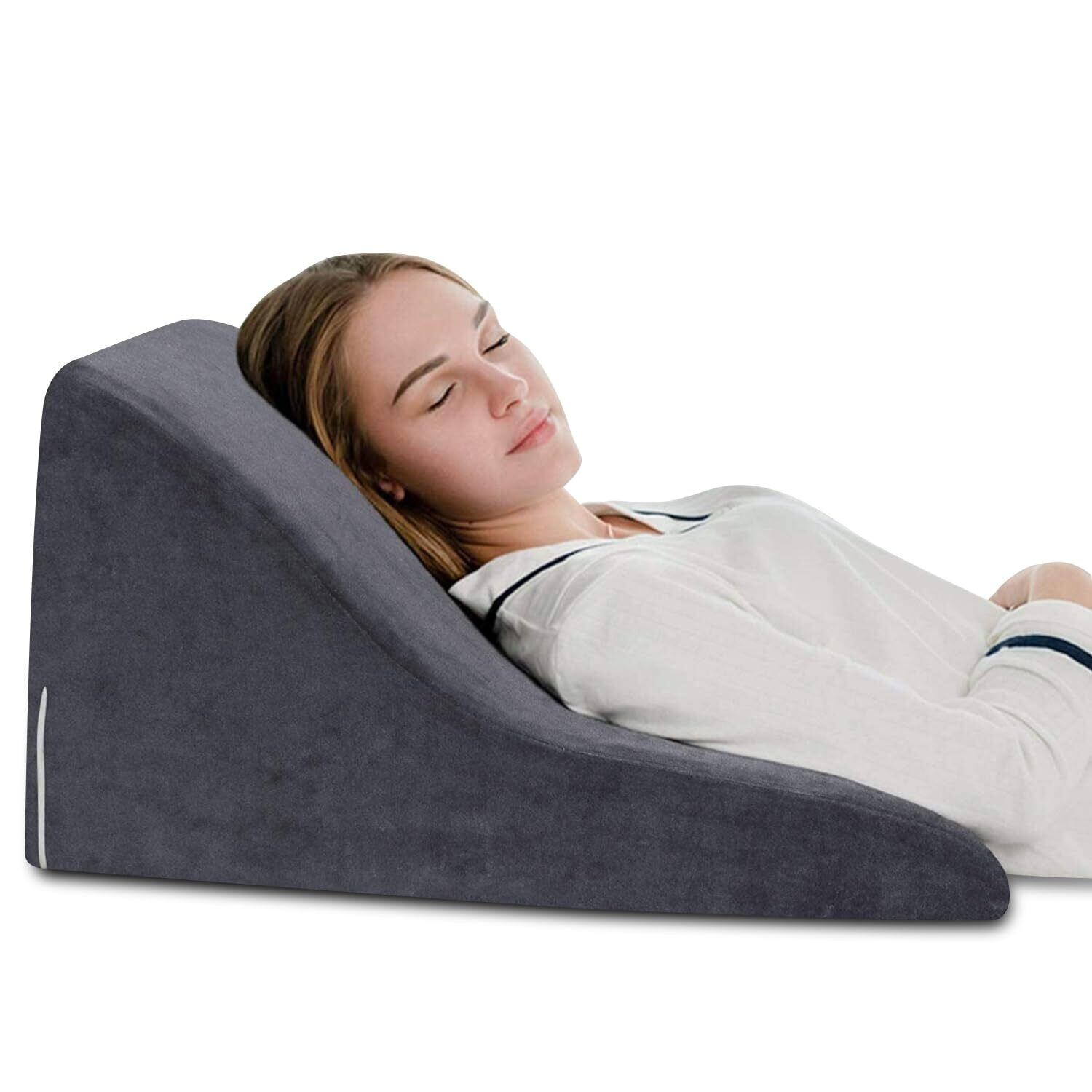 AngQi 三角クッション 三角枕 腰枕 逆流性食道炎 枕 背もたれ クッション なだらか 傾斜枕 ベルボア生地 体にフィット 腰クッション 読書用 妊婦用 お年寄り 老人用 グレー