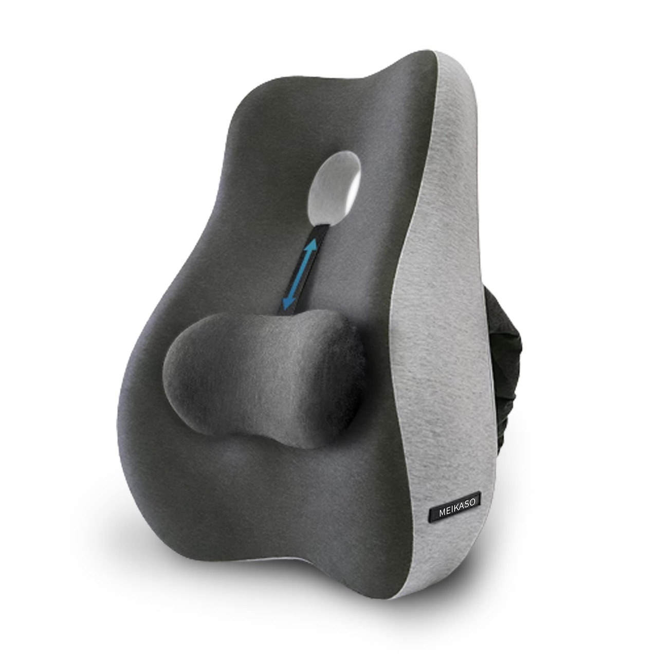 Meikaso 腰クッション ランバーサポート 椅子 アップグレード車用 クッション ウェストクッション 中空背当て 運転クッション 腰楽 低反発 厚さ調整可能 腰枕 背もたれ 通気性 腰サポート 人間工学 車/自宅/チェア用品 取付バンド 洗える(ダークグレー)