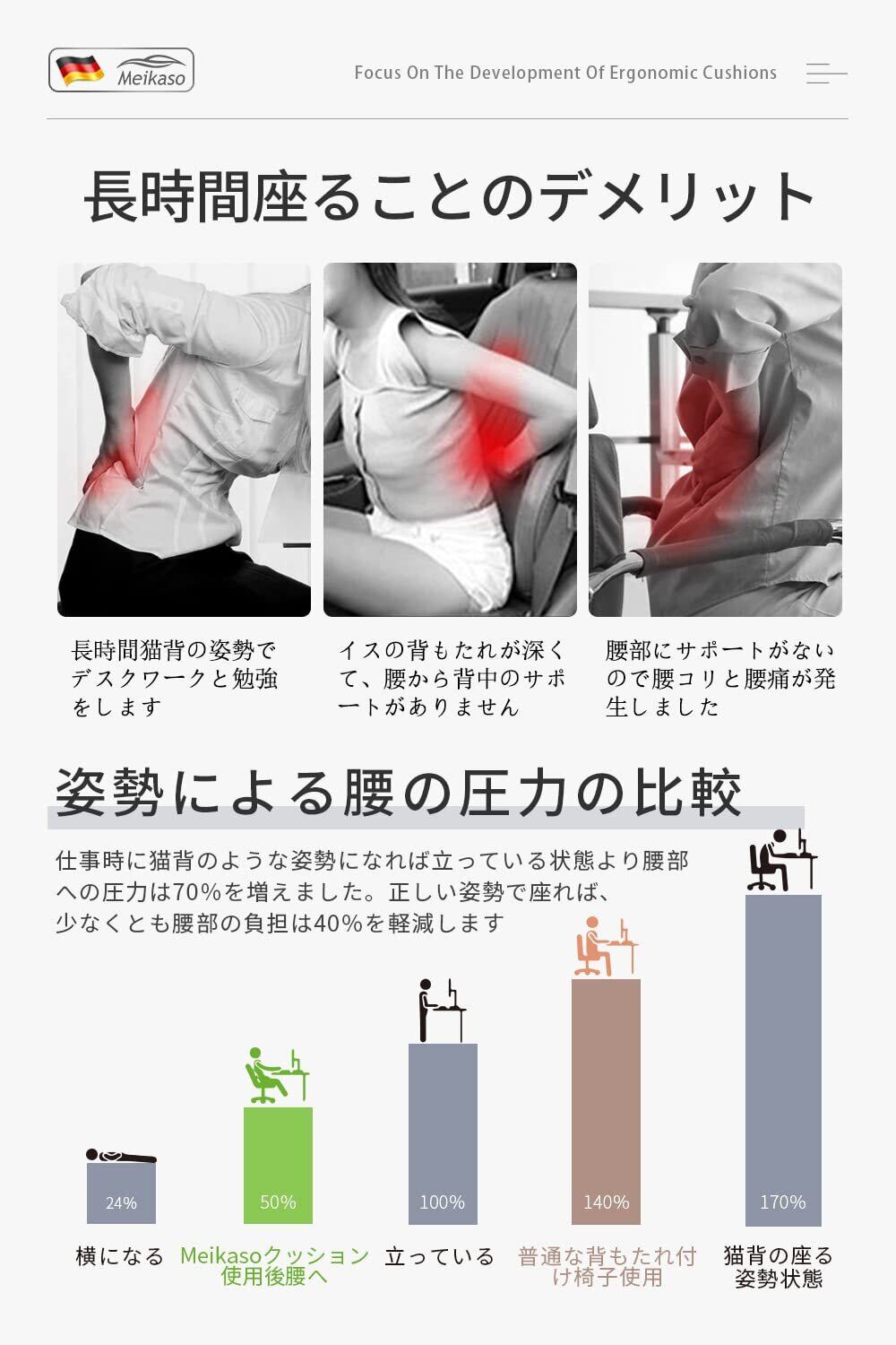 【正しく安定した姿勢に誘導】このクッションは腰部をよりよくサポートしてくれます。ぴったり背中の筋肉と脊椎のS形カーブにフィットしてそれとなく正しい姿勢に導いてくれます。