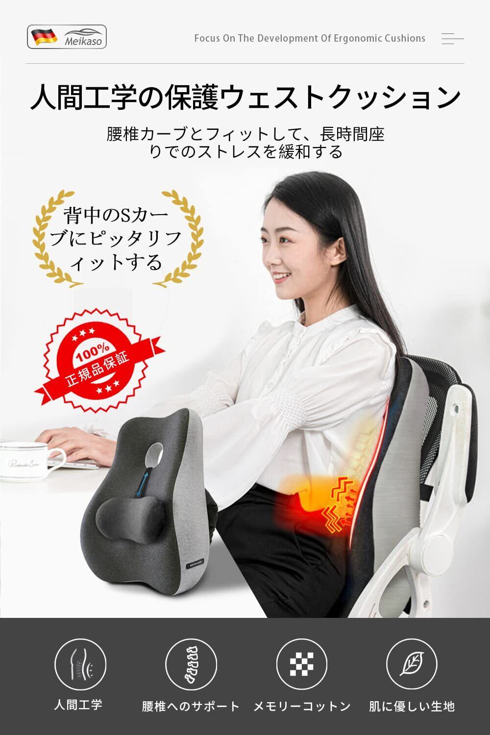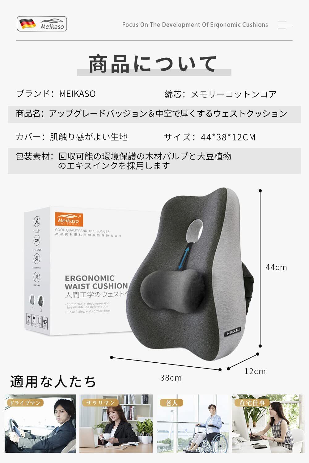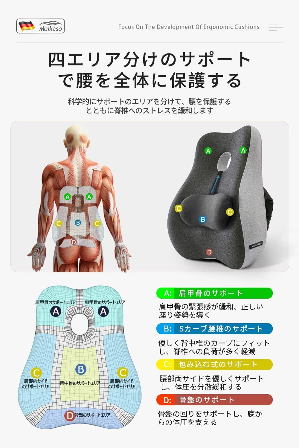 【数量限定】Meikaso 腰クッション ランバーサポート 椅子 アップグレード車用 クッション ウェストクッション 中空背当て 運転クッション 腰楽 低反発 厚さ調整可能 腰枕 背もたれ 通気性 腰サポート 人間工学 車/自宅/チェア用品 取付バンド 洗える(ダークグレー)