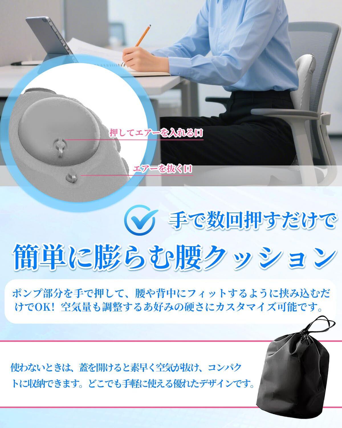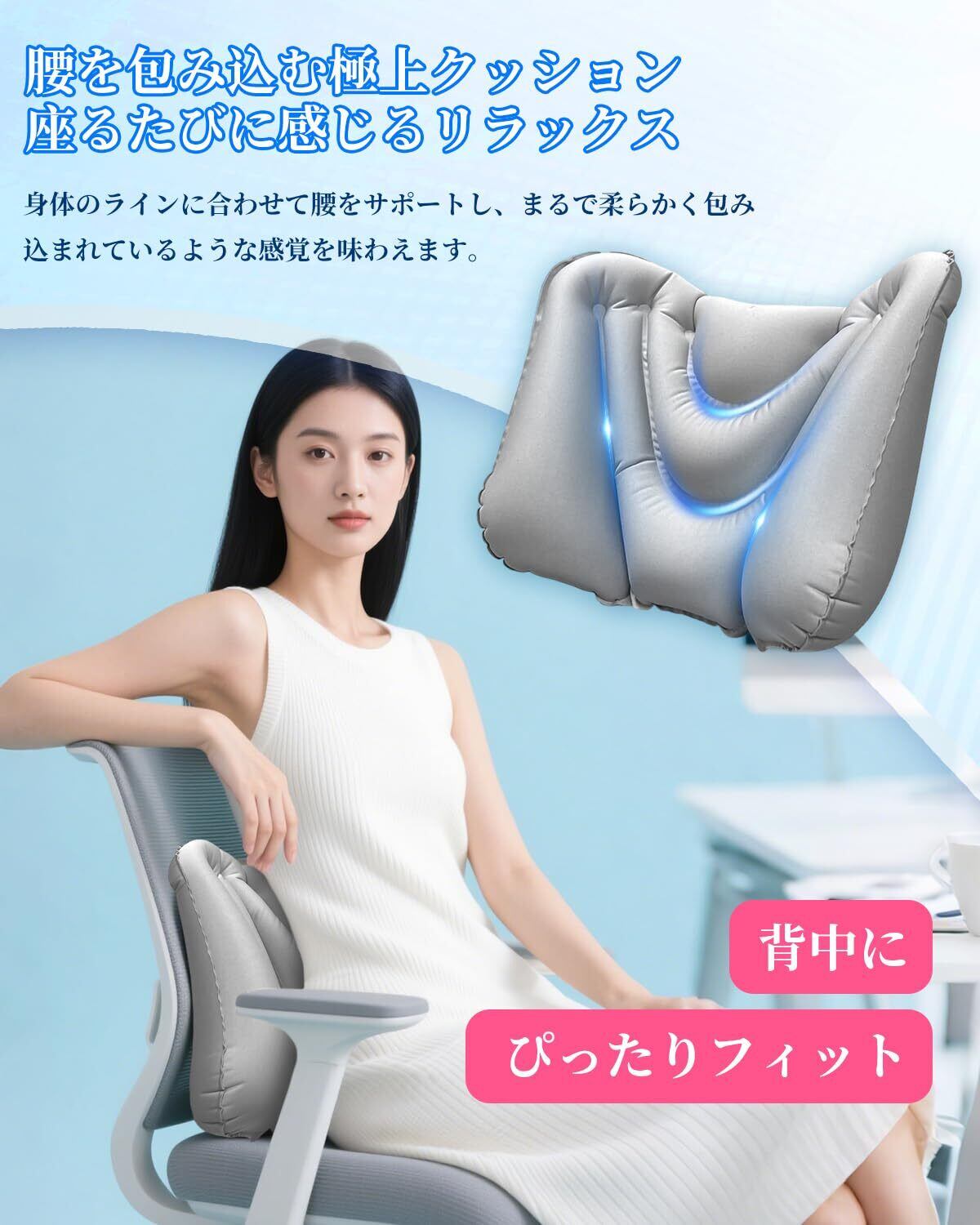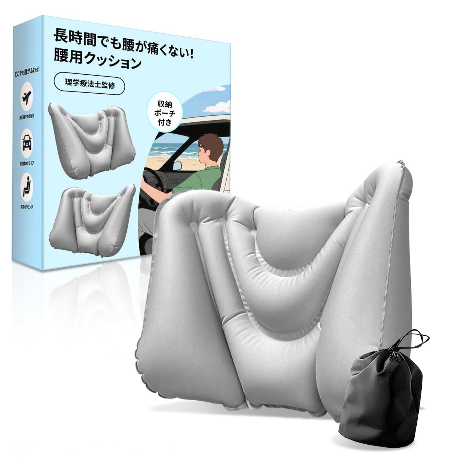 【特価セール】【2025新登場】Majen 腰痛 クッション 腰まくら 腰枕 腰クッション ライトグレー 携帯ポケット 背もたれ 姿勢サポート 椅子 車 新幹線 飛行機 夜行バス 海外旅行 旅行用 映画館 便利グッズ 軽量 男女兼用