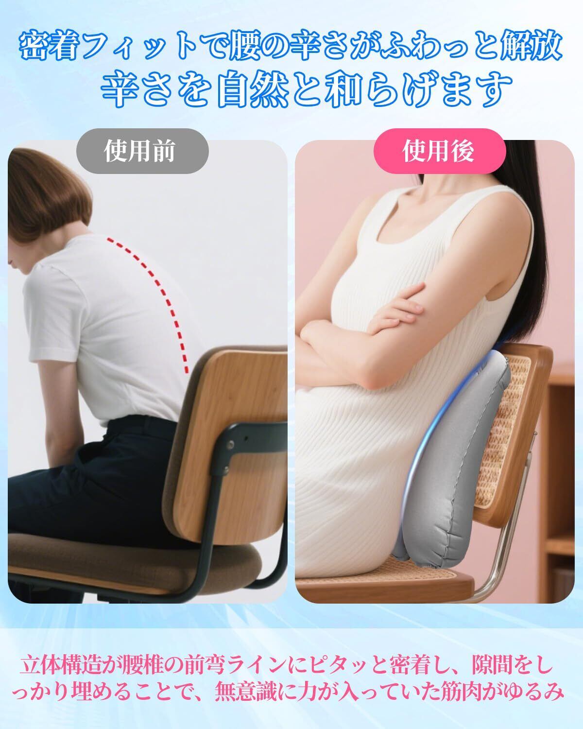 【2025新登場】Majen 腰痛 クッション 腰まくら 腰枕 腰クッション ライトグレー 携帯ポケット 背もたれ 姿勢サポート 椅子 車 新幹線 飛行機 夜行バス 海外旅行 旅行用 映画館 便利グッズ 軽量 男女兼用