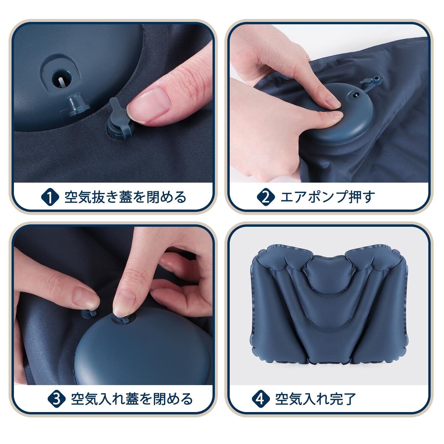 【エアポンプ内蔵】本製品にはプッシュ式のエアポンプが付属しており、手動で押すだけで簡単に膨らませることができます。口を触れる必要のないシンプルなデザインなので、より清潔で衛生的です。