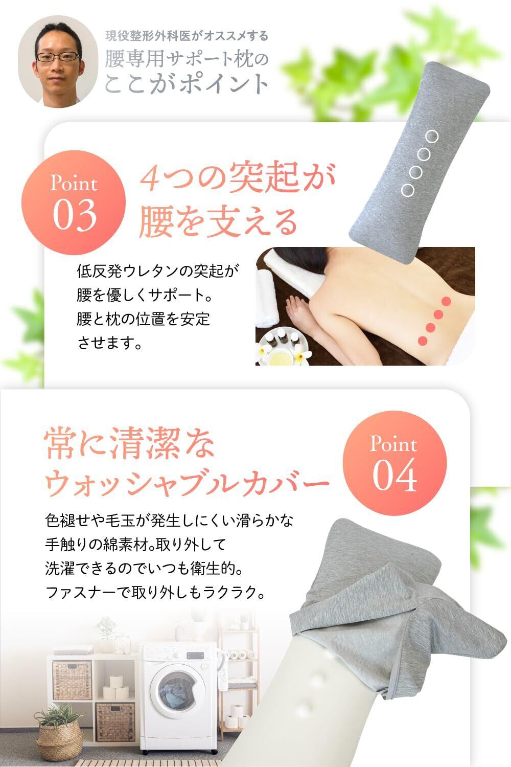 【清潔な環境と衛生】腰枕の清潔さと衛生は、快適な睡眠環境を維持する上で重要です。多くの腰枕は取り外し可能なカバーを備えており、定期的な洗濯や手入れが容易です。これにより、腰枕を清潔な状態に保ち、アレルギー反応や健康リスクを軽減します。