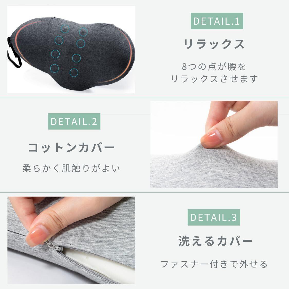 adelphos 腰枕 腰まくら 就寝用 腰痛 飛行機 車 旅行 持ち運び 携帯 椅子 オフィス 低反発 腰 クッション KM3 (1個)
