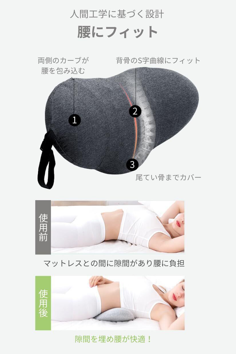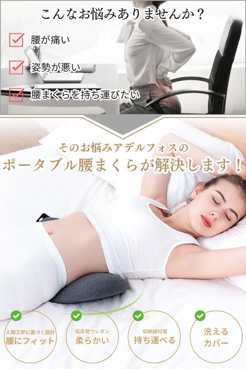 【特別価格】adelphos 腰枕 腰まくら 就寝用 腰痛 飛行機 車 旅行 持ち運び 携帯 椅子 オフィス 低反発 腰 クッション KM3 (1個)