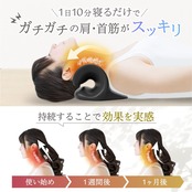 【製品の特徴】人間工学に基づき首から肩にかけてフィットする構造。ウレタンゴム素材を採用しており肌触りがよく弾力性に優れている質感。6つの指圧が寝るだけで優しく指圧します。軽量で持ち運びやすく、自宅でも会社のデスクでも簡単ケアが可能です。首だけでなく腰にもフィット!