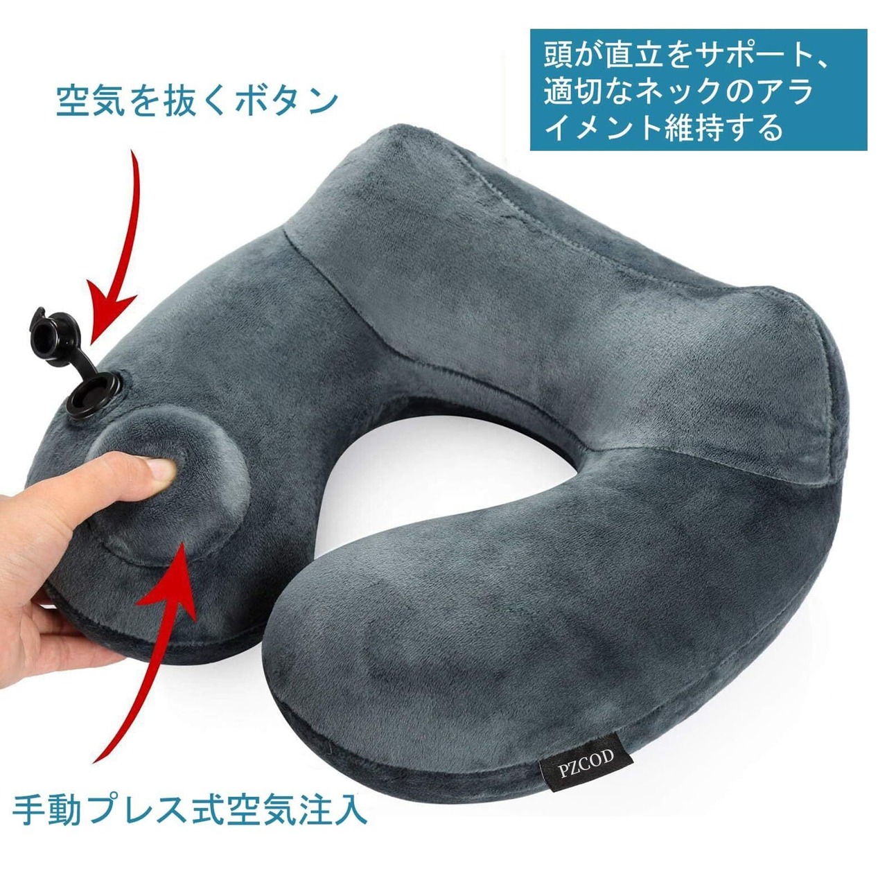 PZCOD ネックピロー 首枕 旅行用 飛行機 空気枕 携帯枕 U型 バス オフィス トラベル 旅行便利グッズ 収納袋 洗えるカバー