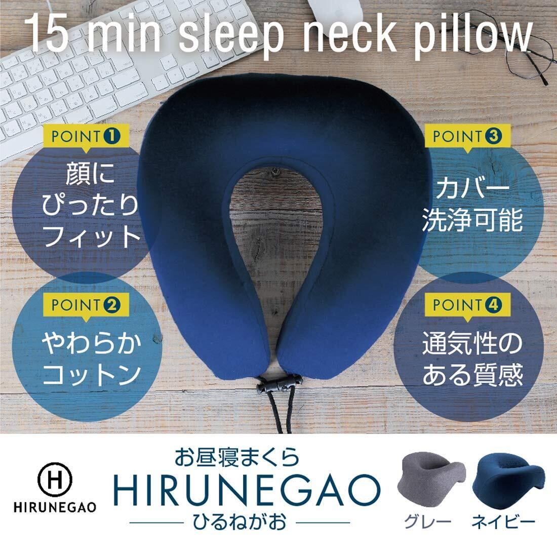 【数量限定】HIRUNEGAO【ヒルネガオ】枕 ネックピロー お昼寝まくら トラベル用 旅行用 休憩 睡眠 (グレー)