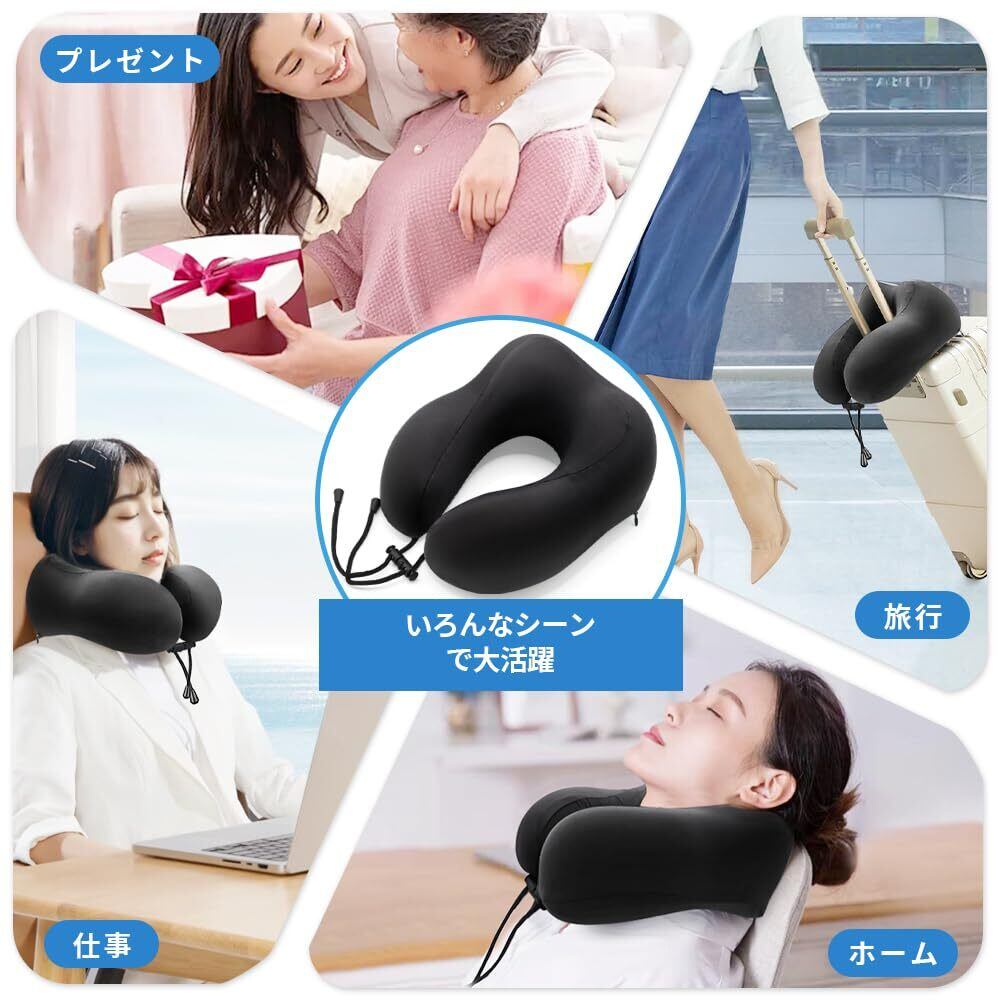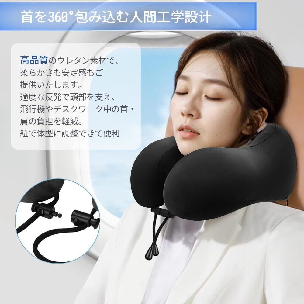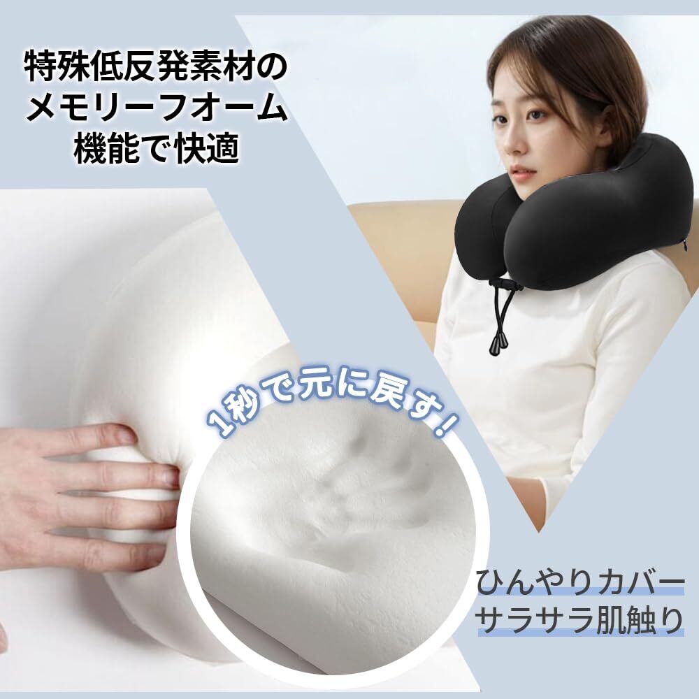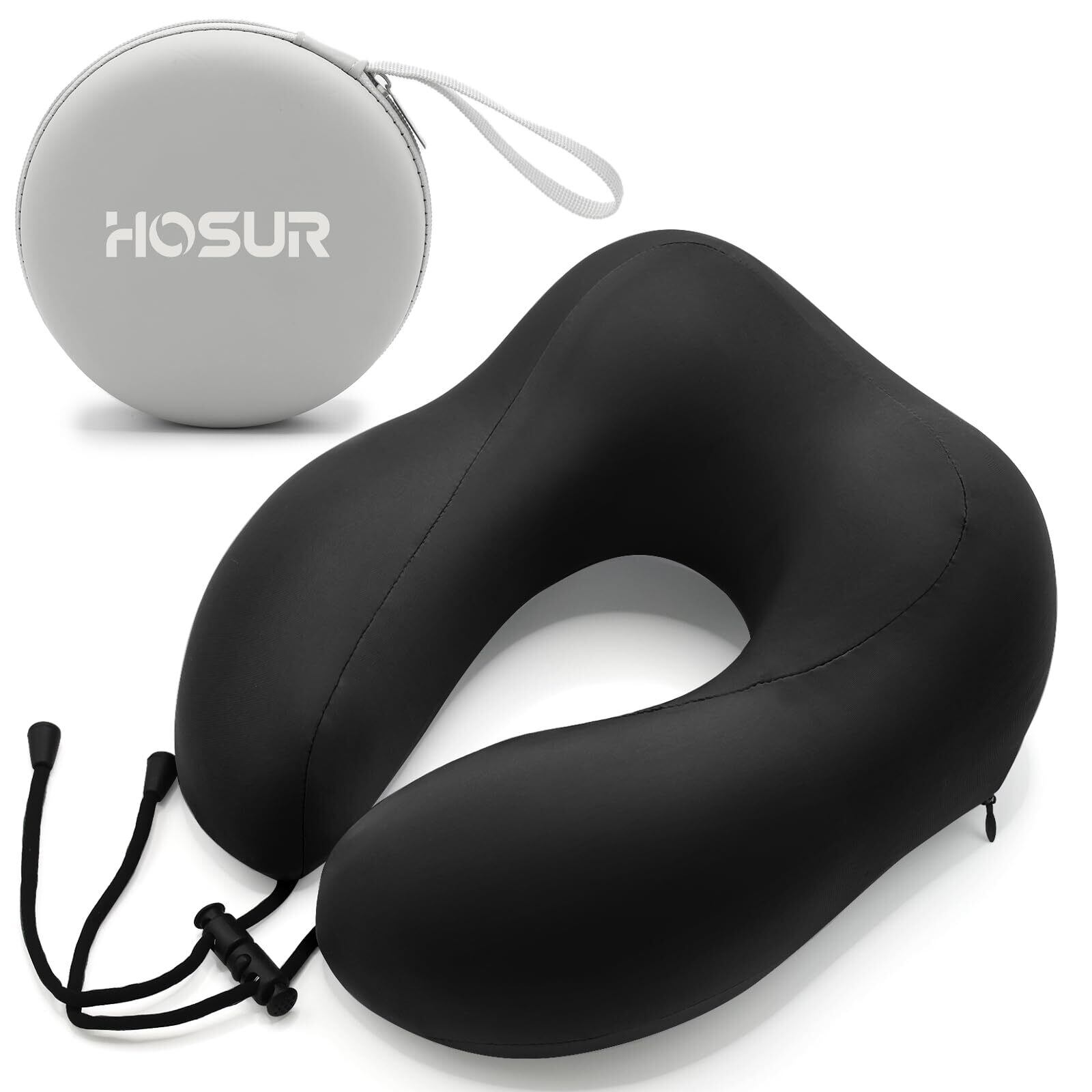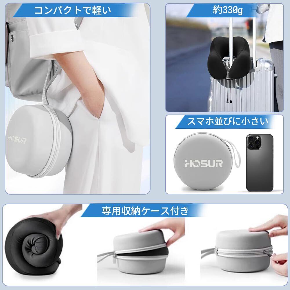 HOSUR ネックピロー 携帯枕 U型まくら 高密度 ひんやり 変形しにくい コンパクト 首枕 収納ケース付き オフィス デスクワーク 休憩 ドライブ 旅行 軽量 旅行枕 洗える 新幹線 飛行機 バス 自宅 昼寝枕 ブラック