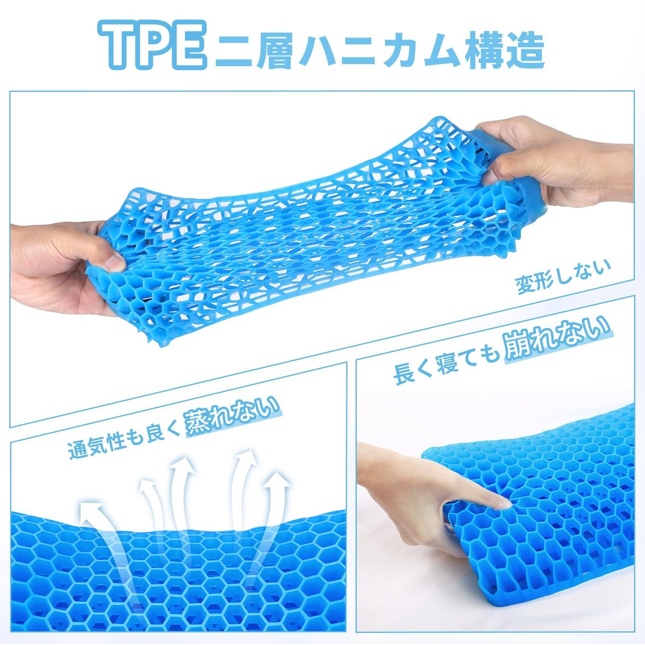 【TPEゲル素材】高反発と低反発の利点を併せ持つTPEゲル素材を使用。ゴムのような柔軟性により形状が変化し、どんな寝姿勢でも首を自然に支えます。