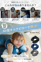 【特価セール】旅行プランナー 理学療法士推薦 Orange Base ネックピロー 洗濯OK 旅行 超軽量 携帯枕 あっという間に寝落ちする エアー型 睡眠 休息 neck pillow 人間工学 飛行機 コンパクト ブラック