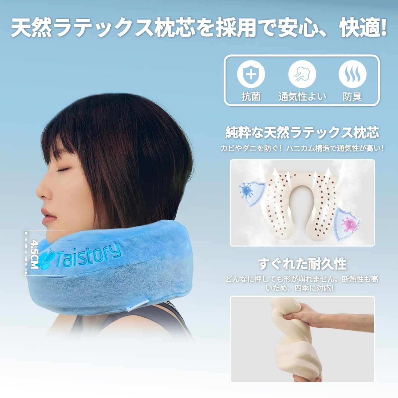 【洗濯可能・すぐれた耐久性、四季に対応】ネック枕 の見えないジッパーデザインは、美しさとホコリ防止を兼ね備えており、枕カバーを簡単に取り外して洗濯できるため、清潔で衛生的です。ネックピローのファスナーについて開閉テストを1,000回以上実施済み、ストレスなくご使用いただけます。枕芯が天然ラテックスで素材復元力が非常に強く、 どんなに押しても形が崩れません。ウレタン・合成ラテックスに比べて遥かに長持ちです。 室温の上下で硬さが変わることもなく、断熱性も高いため、四季を通して同じ寝心地です。