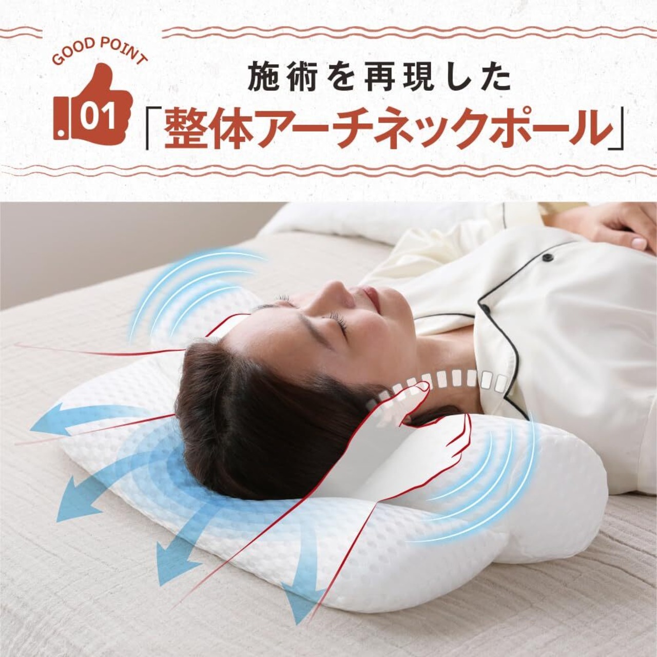 整体師と共同開発!首本来のS字カーブをキープして、首肩の負担を軽減する枕。