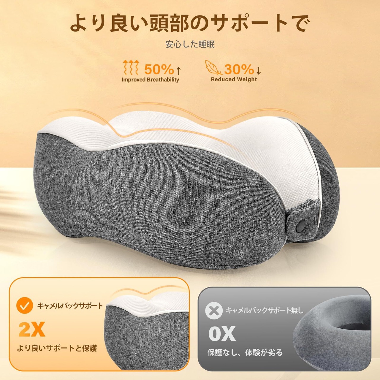 【柔软な触感と快適なサポート性、優しく首を包み込む】ネックピロー本体は高品質で高密度のポリウレタン・記憶フォームを採用しており、ネックピローおすすめ 柔軟性と弾力性をを両立して、体圧分散機能と形状記憶機能を持っております。贴合性のあるサポートが効果的に首の圧力を軽減し、より深い睡眠に入り、活気にあふれた目覚めをもたらします。