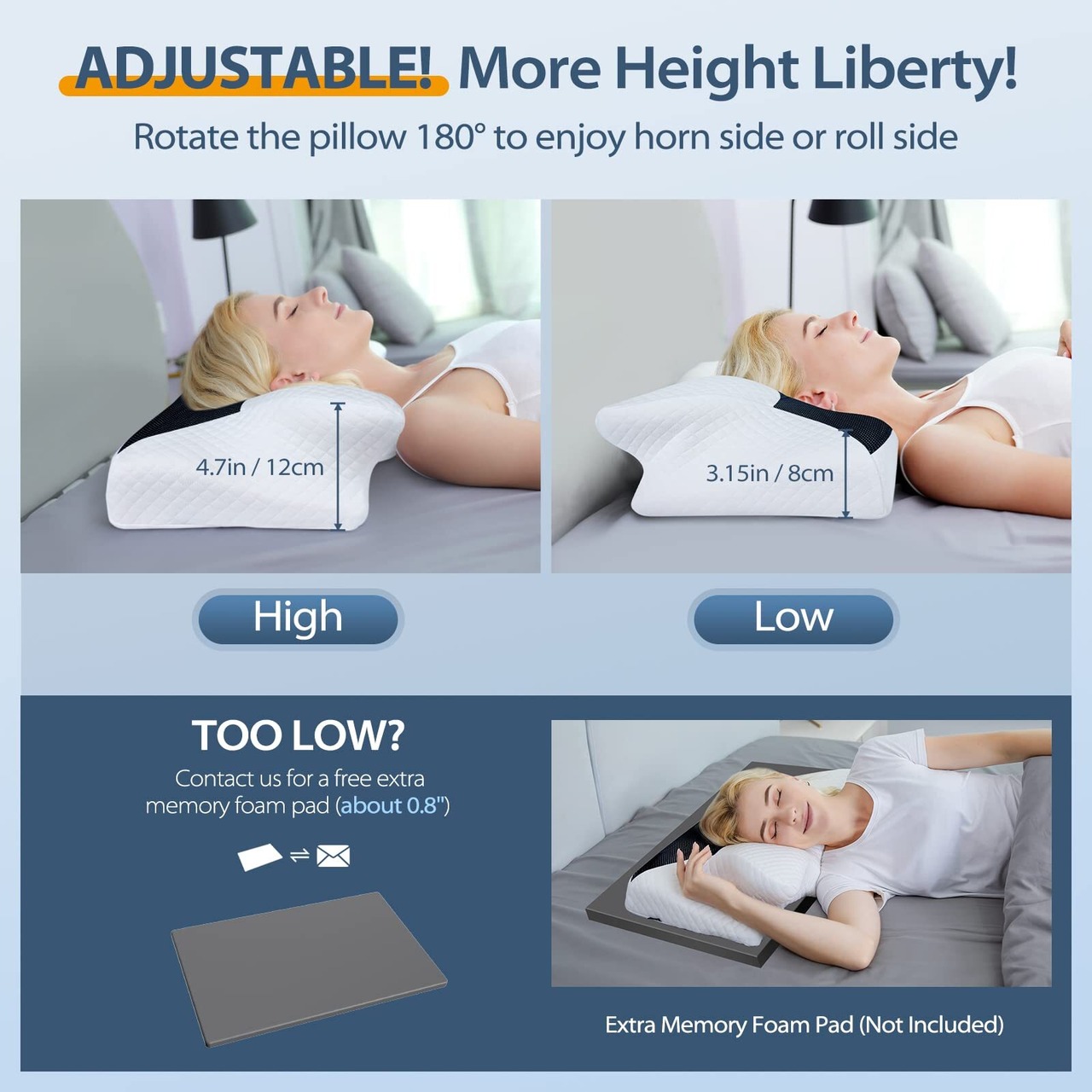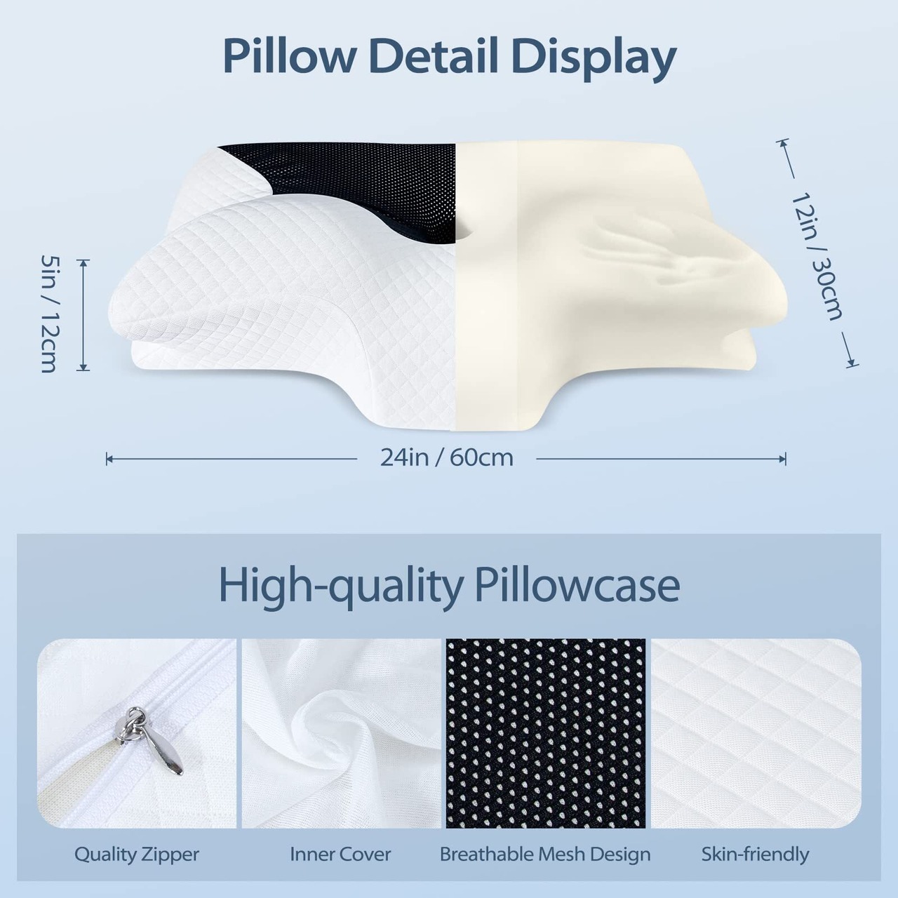 人間工学に基づいた設計: HOMCA 頸椎枕は、人間工学的なデザインで、頭、首、肩、背中をニュートラルなポジションにサポートし、整えます。中断しない眠りに流れ、フレッシュな目覚めができます。