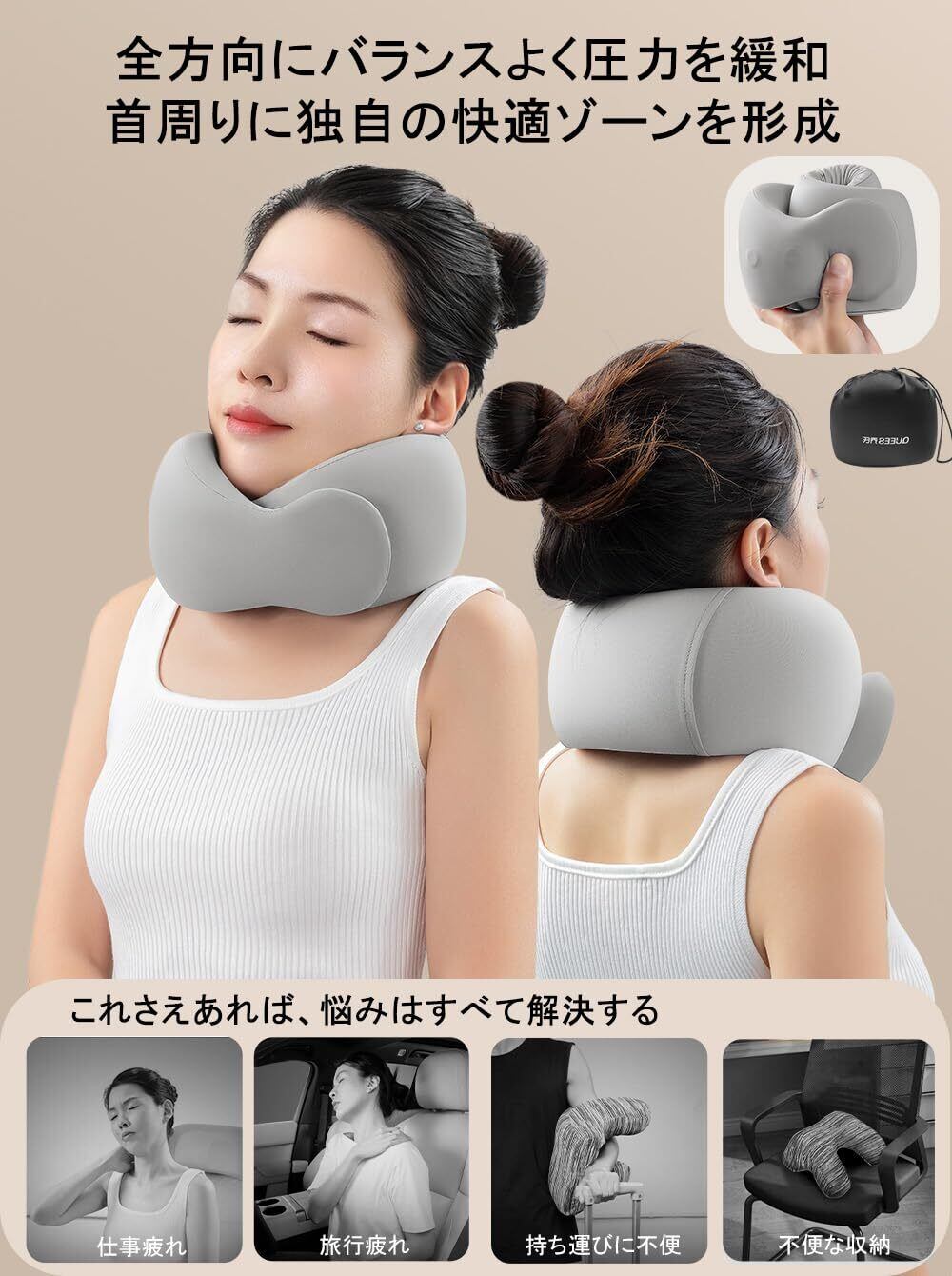 【2025最新】ネックピロー アップグレード コンパクト 快適さに合わせて選べる4つのサイズ 首元ボタン付き 非常に快適な質感 398g 枕 低反発 うたた寝ピロー 飛行機 neck pillow 携帯枕 外して洗えるカバー付き 車 夜行深夜バス 新幹線 ソファ 椅子 旅行 お昼寝 便利グッズ 快適グッズ 収納ポーチ付き (グレー)