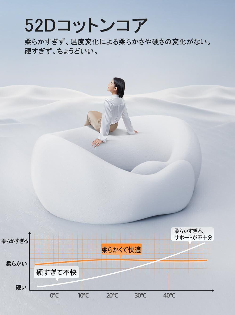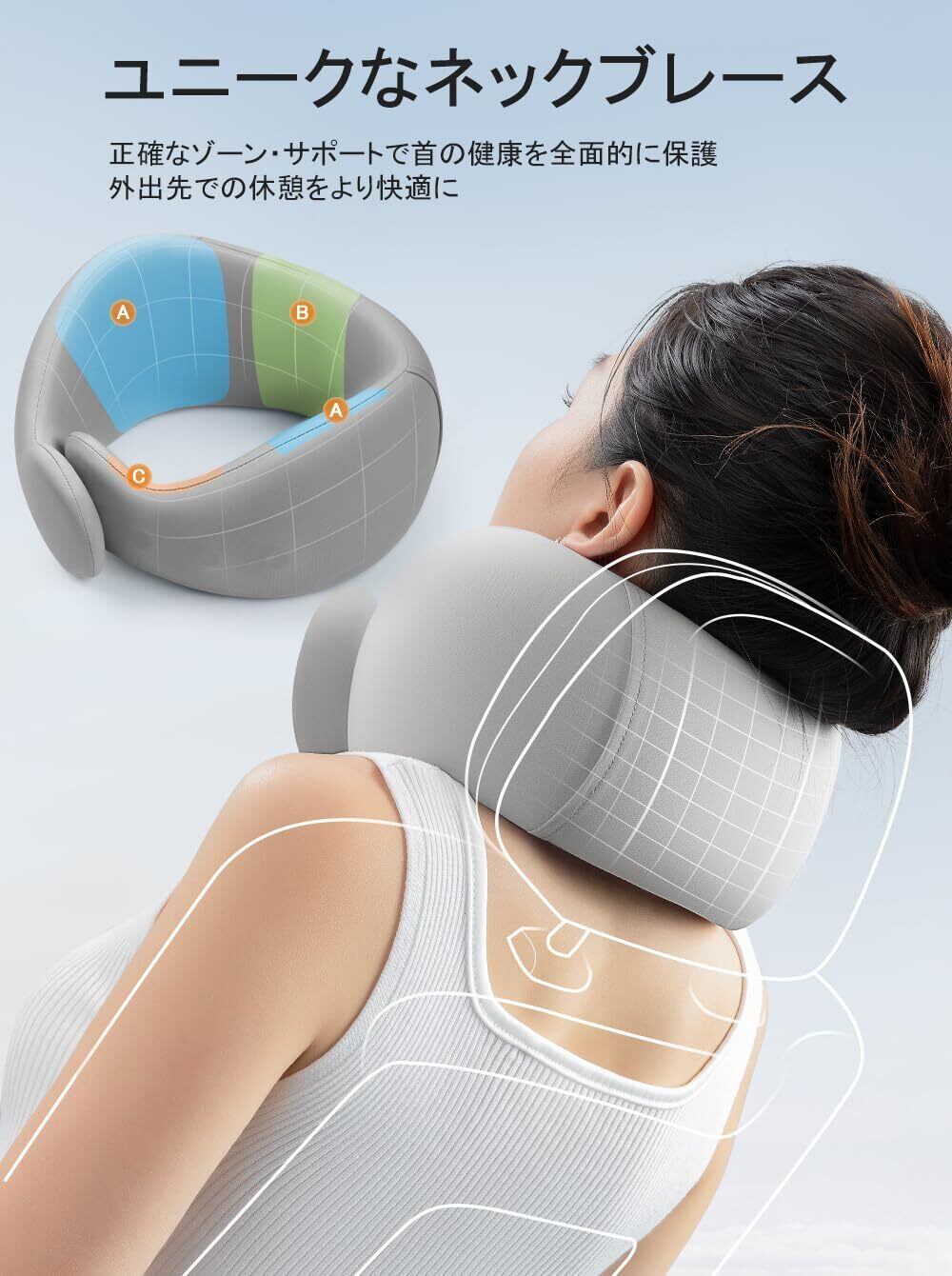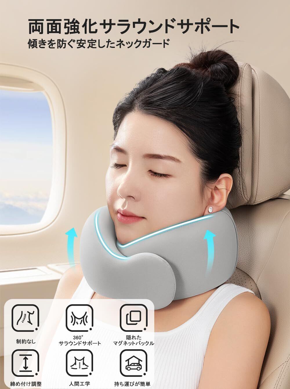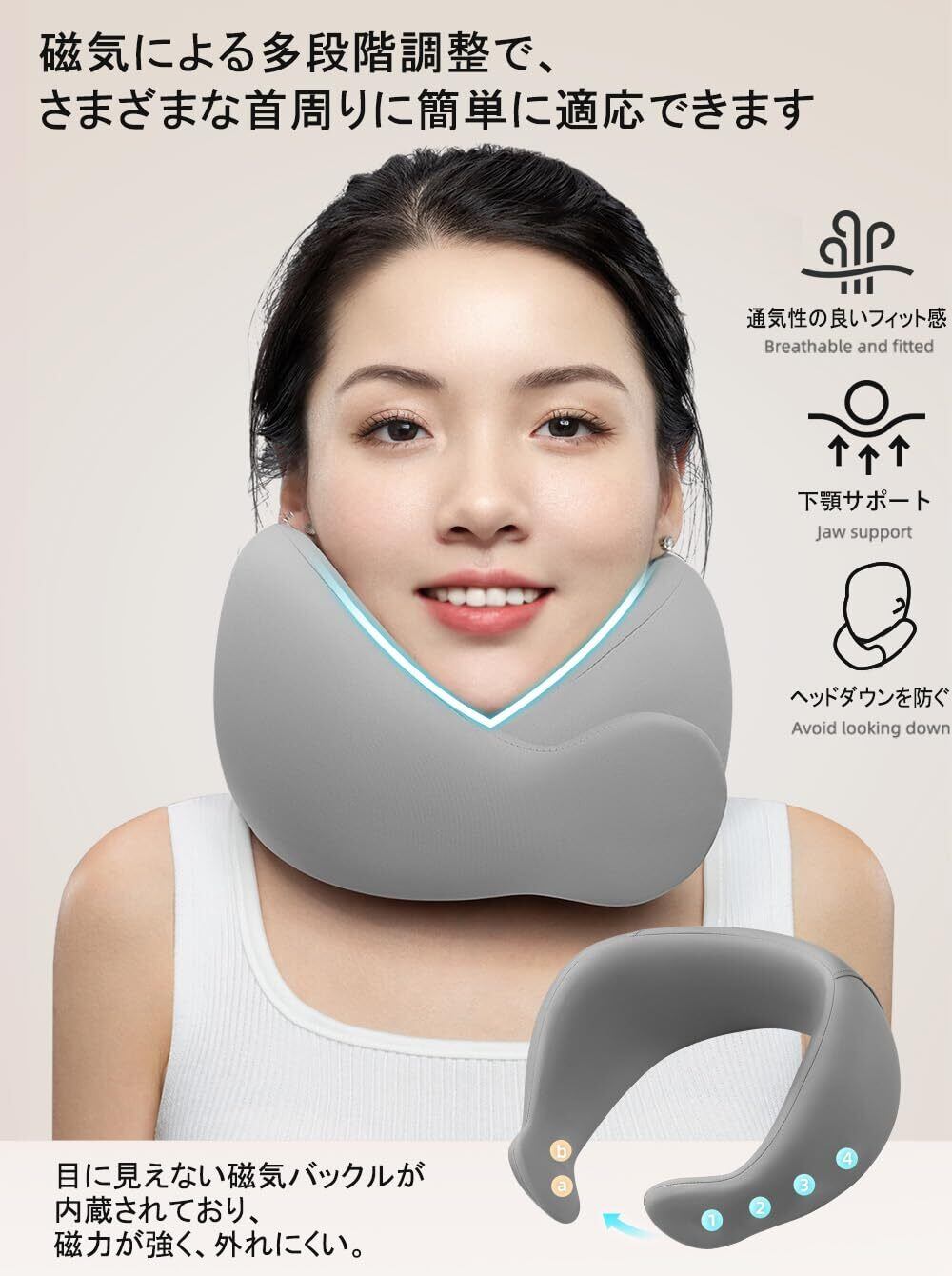 【極上のフィット感】人間工学に基づいた3D設計により、360度頭部を支えてくれるU字型で首や肩への負担を軽減します。アゴから耳うしろに向かって立ち上がる形状が、後頭部を支えて、長時間過ごせる自然なポジションにします。高い通気性の生地を使用し、効率よく空気が出入りするので、首まわりが蒸れにくい、睡眠の中断を確実に防ぎます!