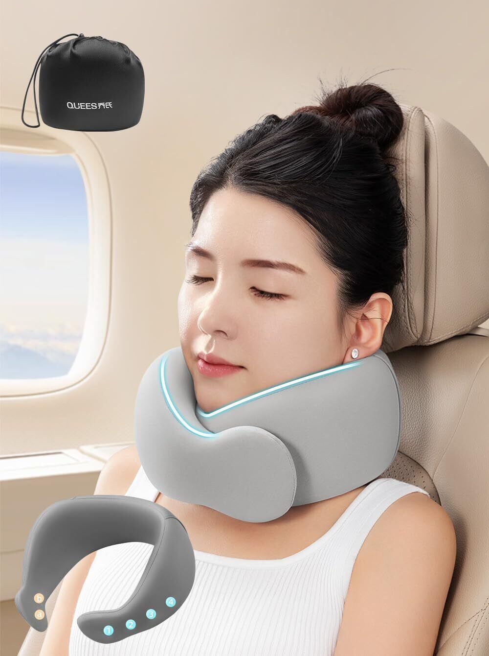 【サイズ調整自由自在】従来のクッション型ネックピローではサイズ調整が不可能で、中々自分の体型に合わず、逆に首に負担がかかることも。この製品は隠しボタン設定を採用しており、外観に影響を与えません。4段階の調整が可能で、より正確な調整が可能です。様々な体系の方にピッタリフィットします。