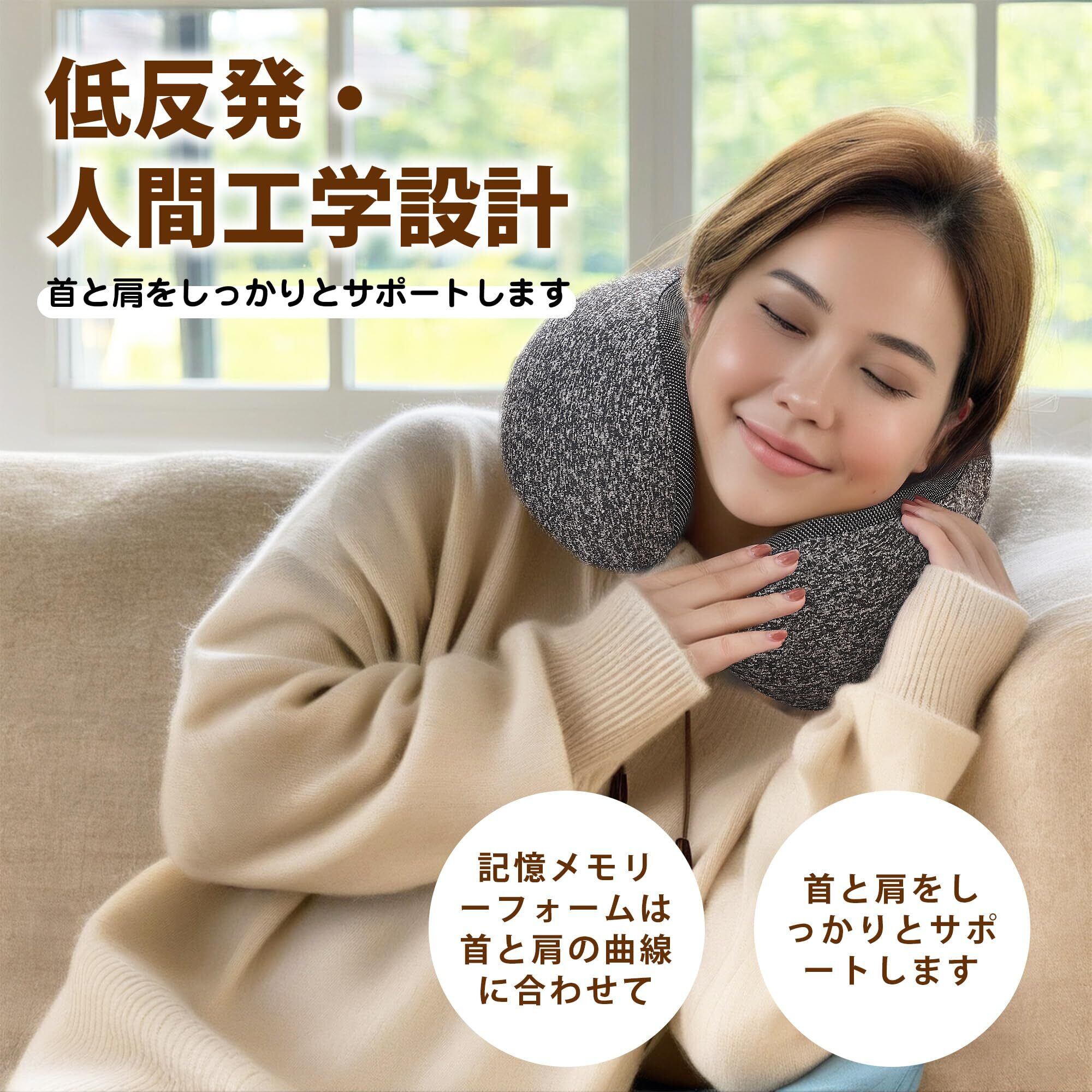 【低反発・人間工学設計】記憶メモリーフォームは首と肩の曲線に合わせて自然に調整され、圧力を軽減し、リラックスと休息をサポートします。人間工学に基づいたU字型デザインで、首と肩をしっかりとサポートします。安定感が抜群で、長時間の座位や仰向けの姿勢でも肩や首への負担を軽減し、疲れにくく、リラックスした状態を保ちます。