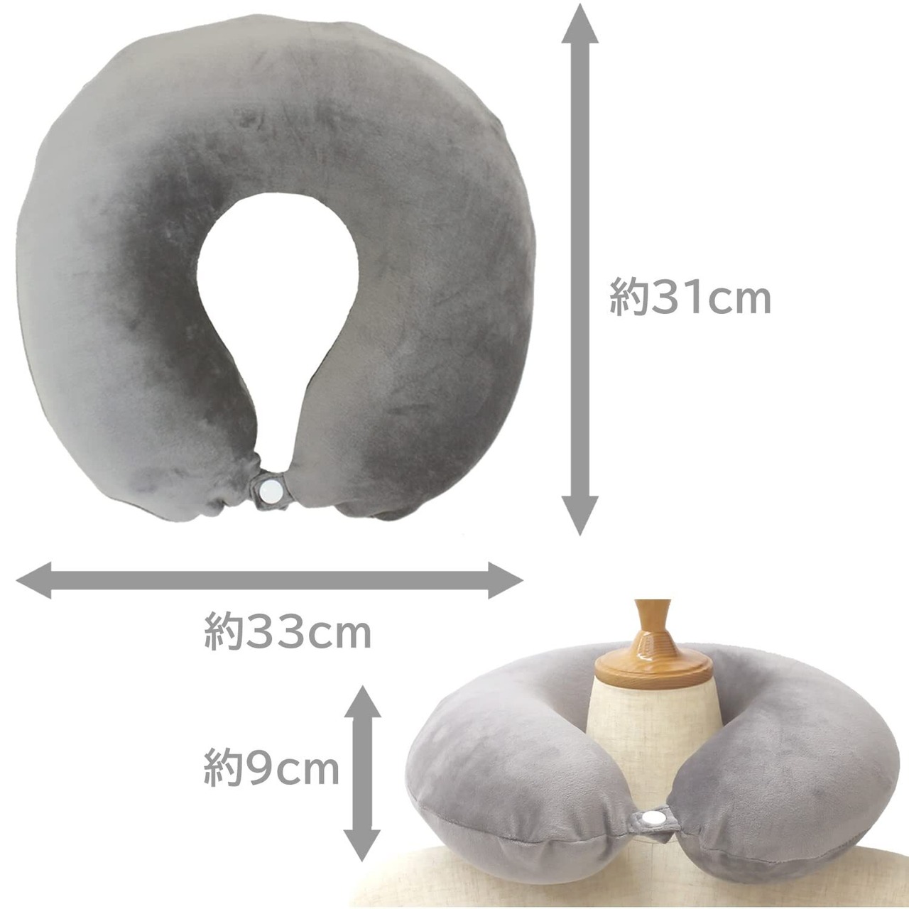 メリーナイト 枕 低反発ネックピロー 「もちとろん」 グレー U型 外して洗えるカバー付き 首元ボタン付きでズレにくい ウレタン 仮眠枕 うつぶせ寝 オフィス デスクワーク 休憩中 ドライブ 旅行 MTR1005-05