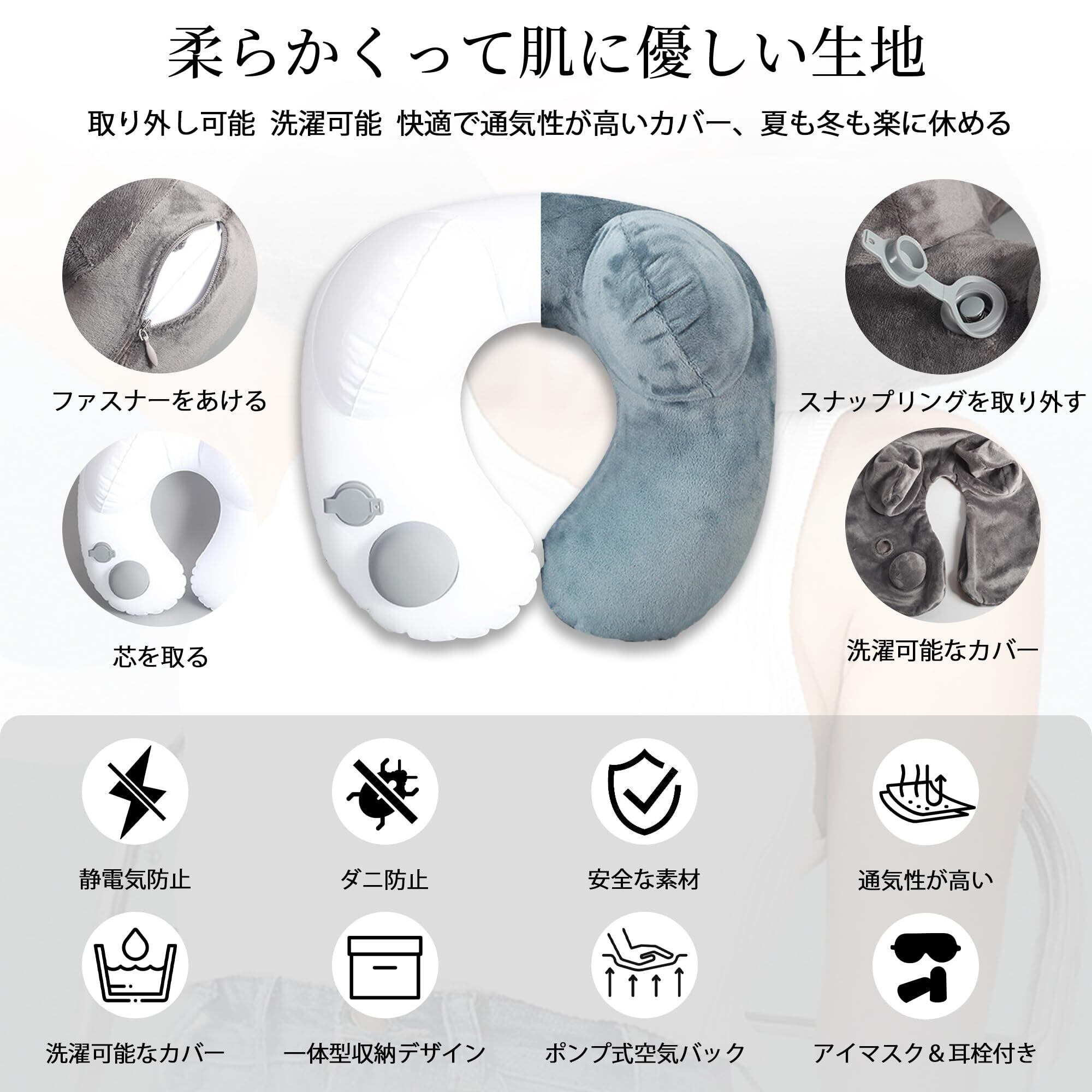 【肌に優しい素材】表面には柔らかいマイクロファイバー素材を採用しており、肌に優しいくで毛玉もはじけません。快適な眠りをサポートする。エアバッグは高弾性PVC材質で作られています。無毒無臭で、空気が漏れることもなく、膨らましすぎて破裂することもありません。収納ポーチ、耳栓、アイマスクが付属します。(耳栓の色はランダムです。)