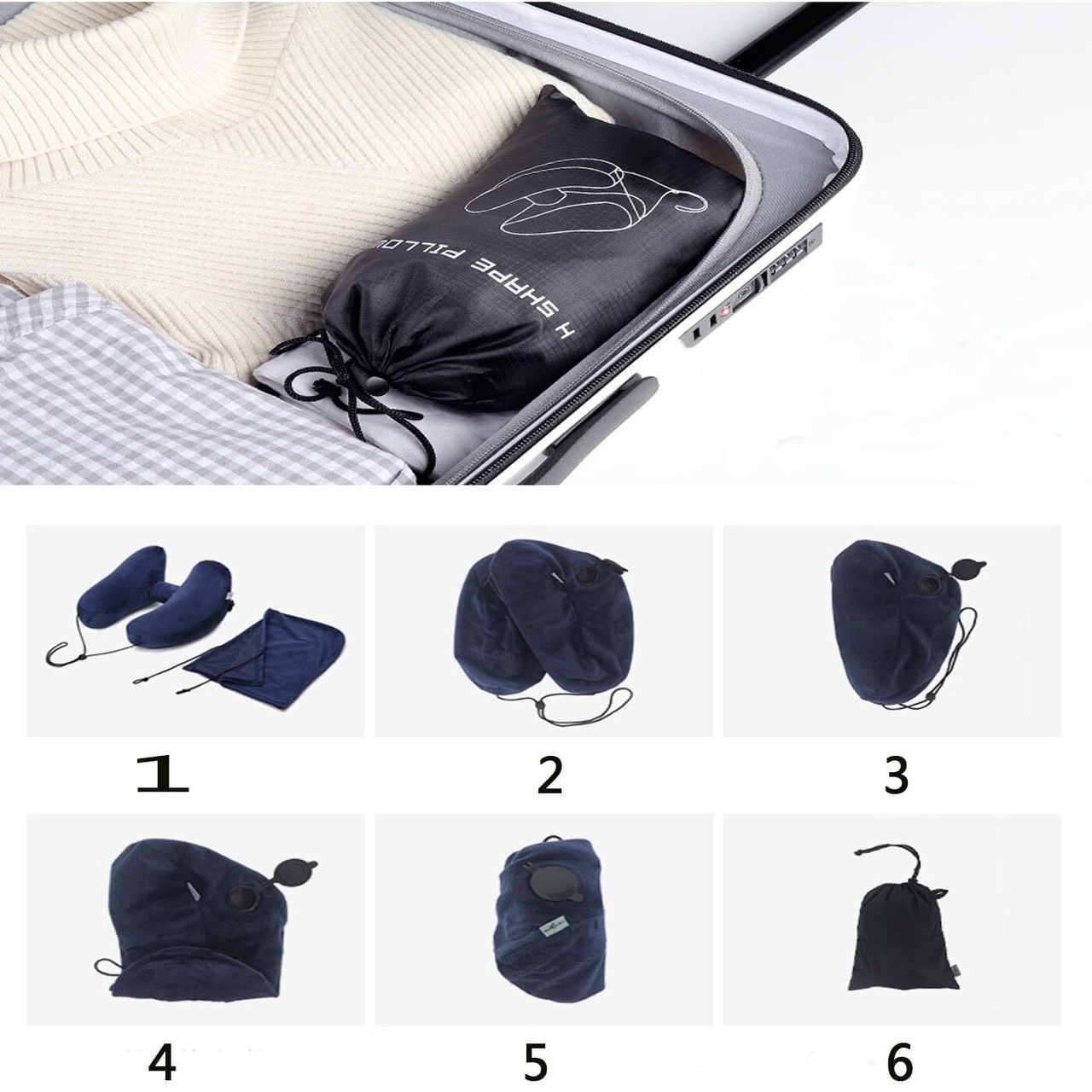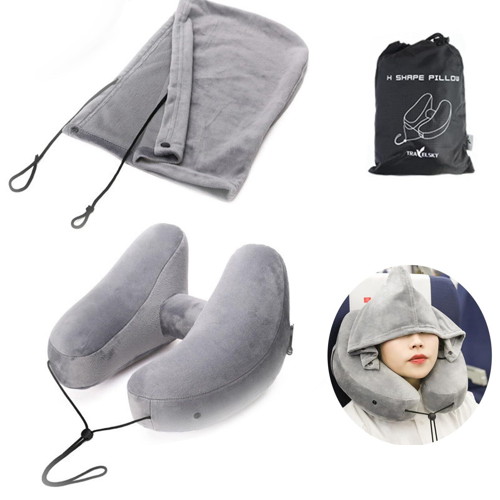 ネックピロー H型 グレー 携帯枕 低反発メモリーフォーム エアーピロー 頭と首のサポート フード&収納ポーチ付き 洗濯可能 旅行/出張/オフィス/自宅用 飛行機/車/バス/新幹線対応 快眠サポート 軽量&コンパクト 誕生日&ギフト選択肢