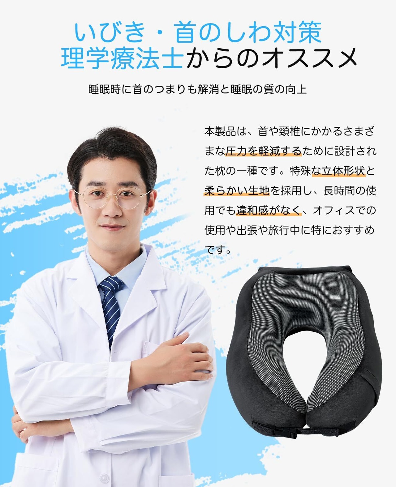 ️【低反発・柔軟性抜群】ネックピロー本体は高品質で高密度のポリウレタン・メモリフォームを採用しており、柔軟性と弾力性をを両立して、体圧分散機能と形状記憶機能を持っております。一方でまるで餅っとした柔らかい触感でしっかり首をサポートしてとももに、優れた弾力性能により、使用しない時にも迅速に元の形状に復元され、長時間使っても型崩れしづらいです。休息時には負担をかずに素早く眠りに入り、最も効果的に利用することができます。