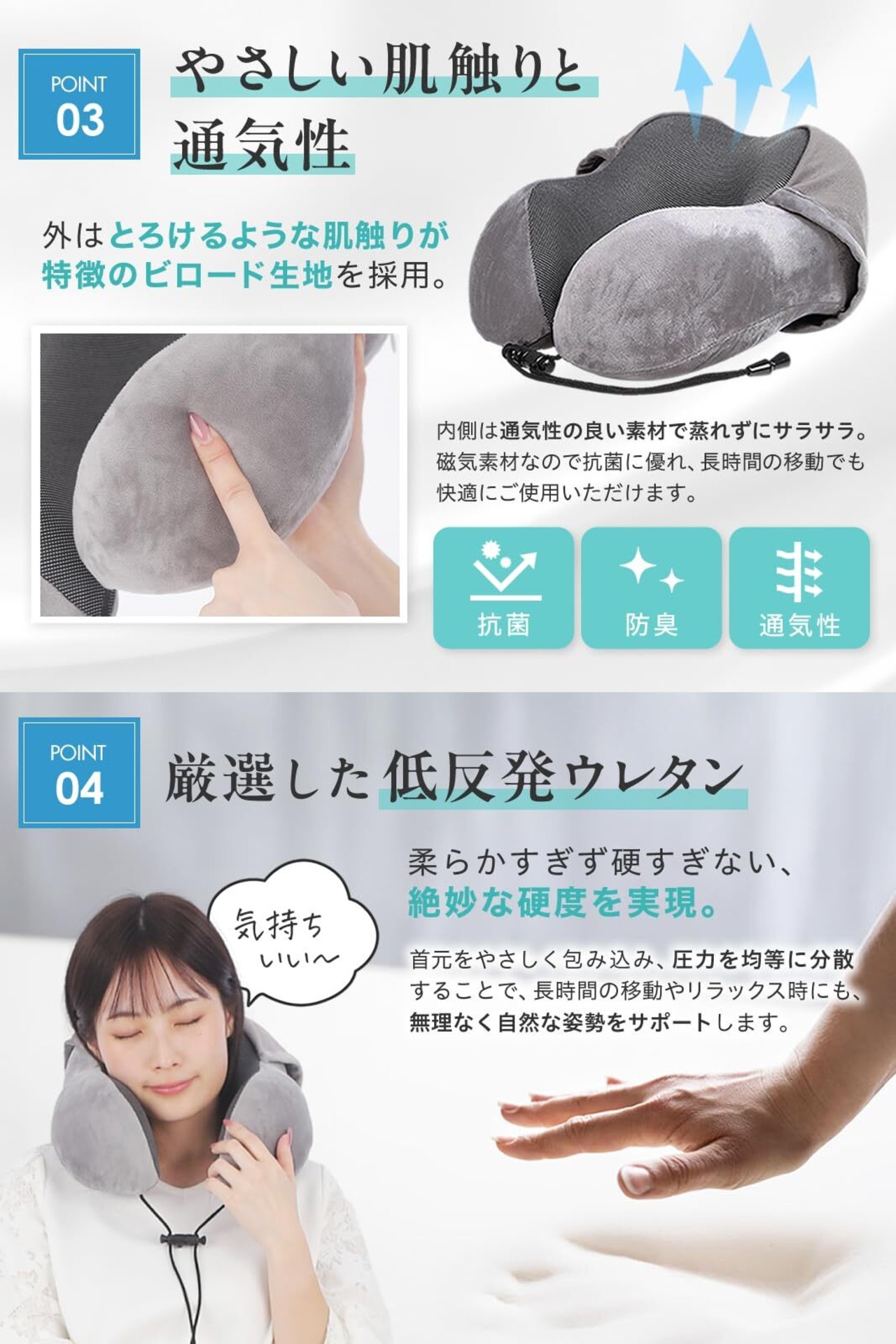 長時間の移動で首や肩が痛くなる経験はありませんか?本製品は、理学療法士と客室乗務員が監修した、首にやさしいトラベルピローです。高品質な低反発ウレタンがしっかりフィットし、移動中の負担を軽減します。