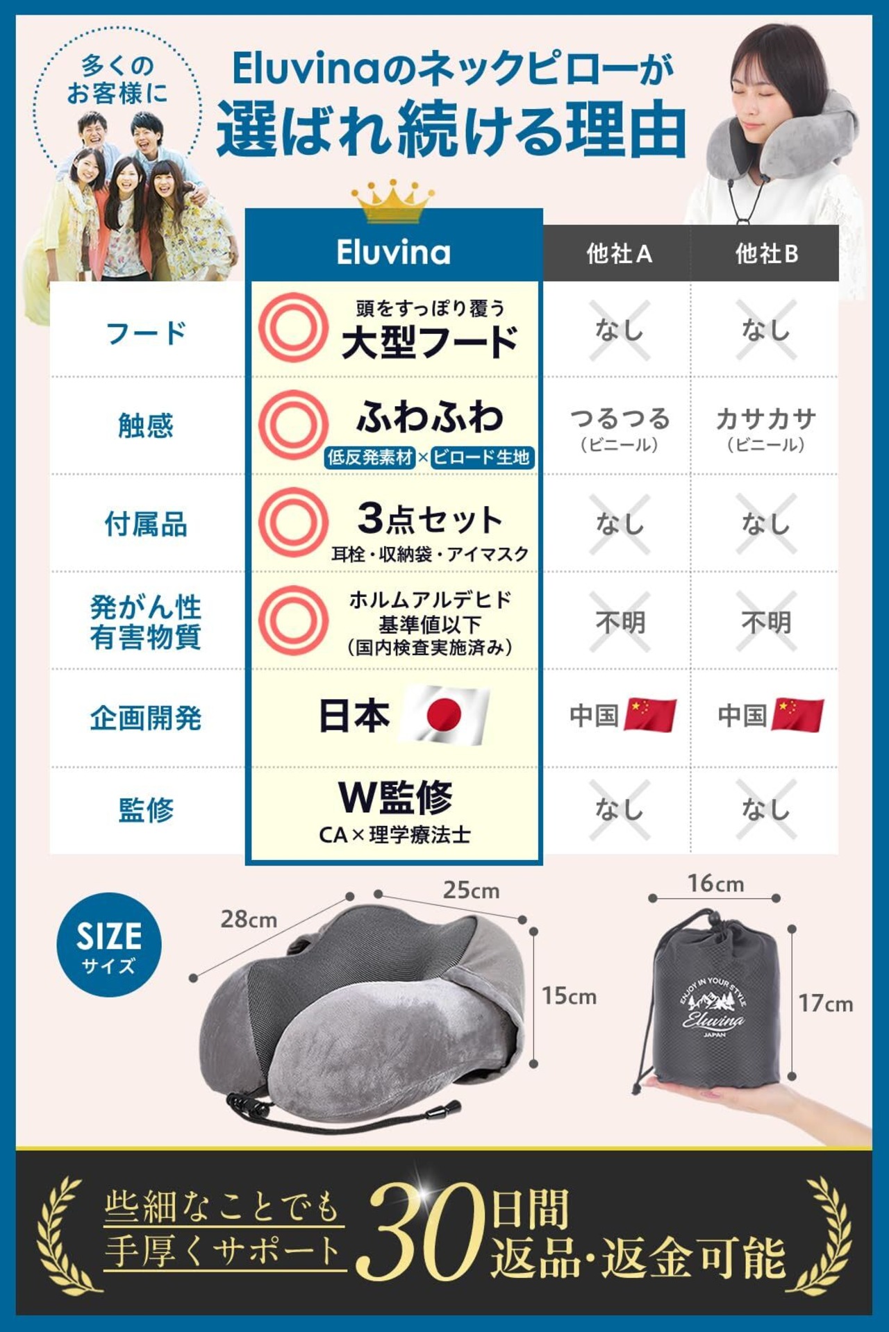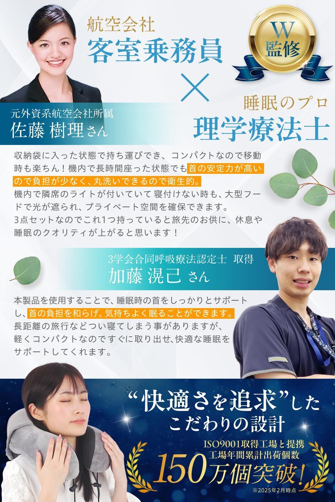 【理学療法士&CA監修!首に優しい設計】 長時間の移動でも快適!理学療法士と客室乗務員が監修した人間工学デザインで、首の負担を軽減し、正しい姿勢をサポートします。