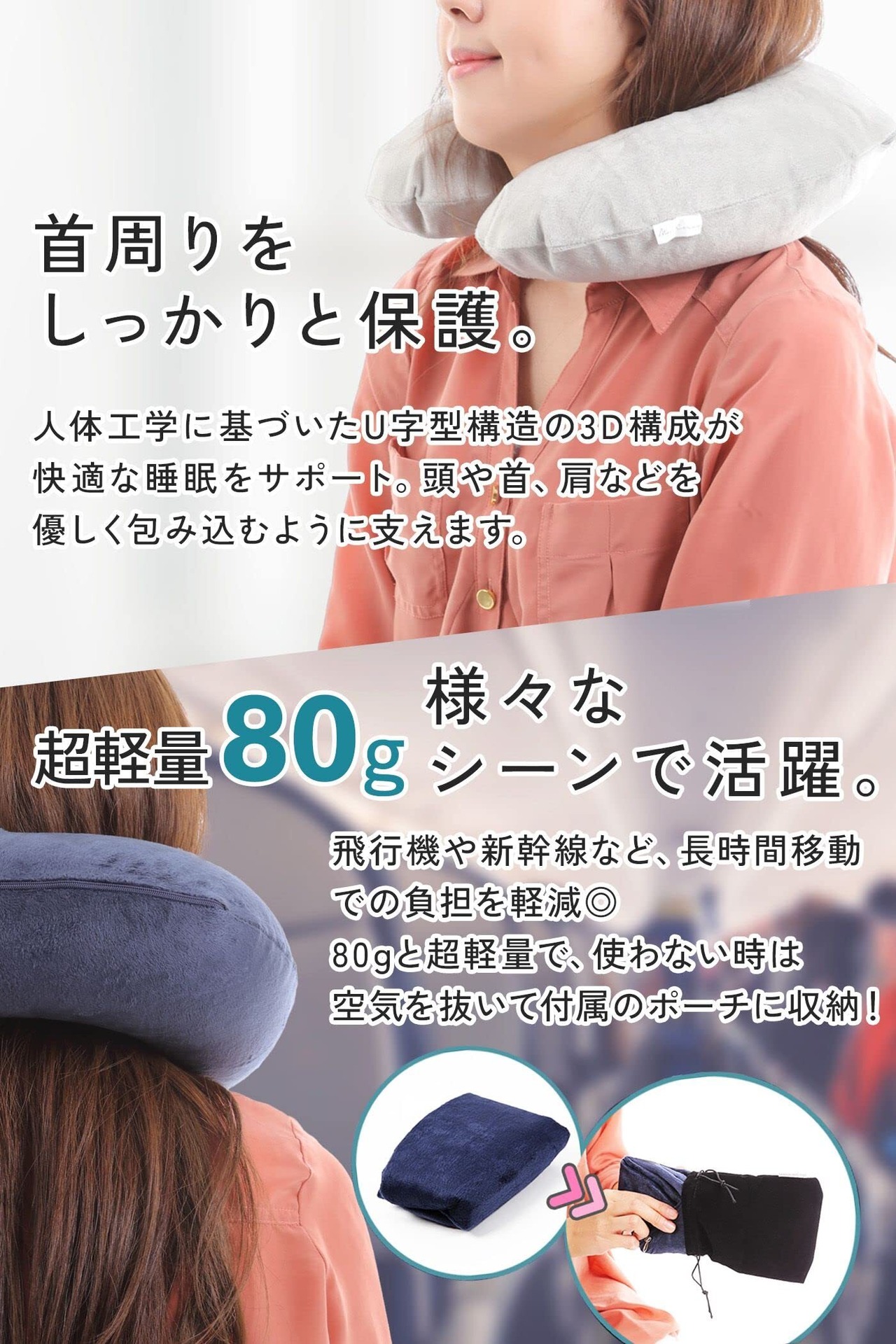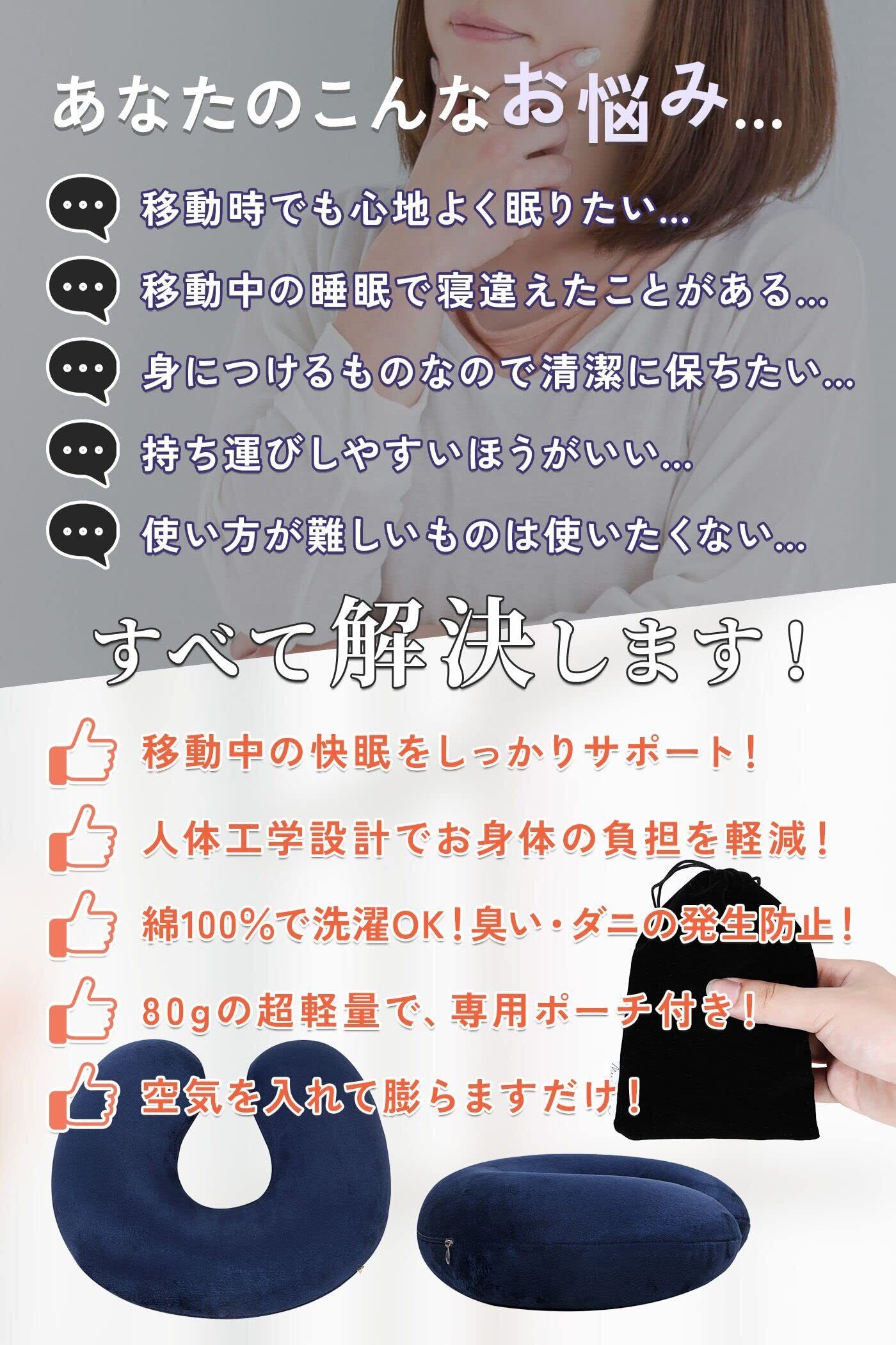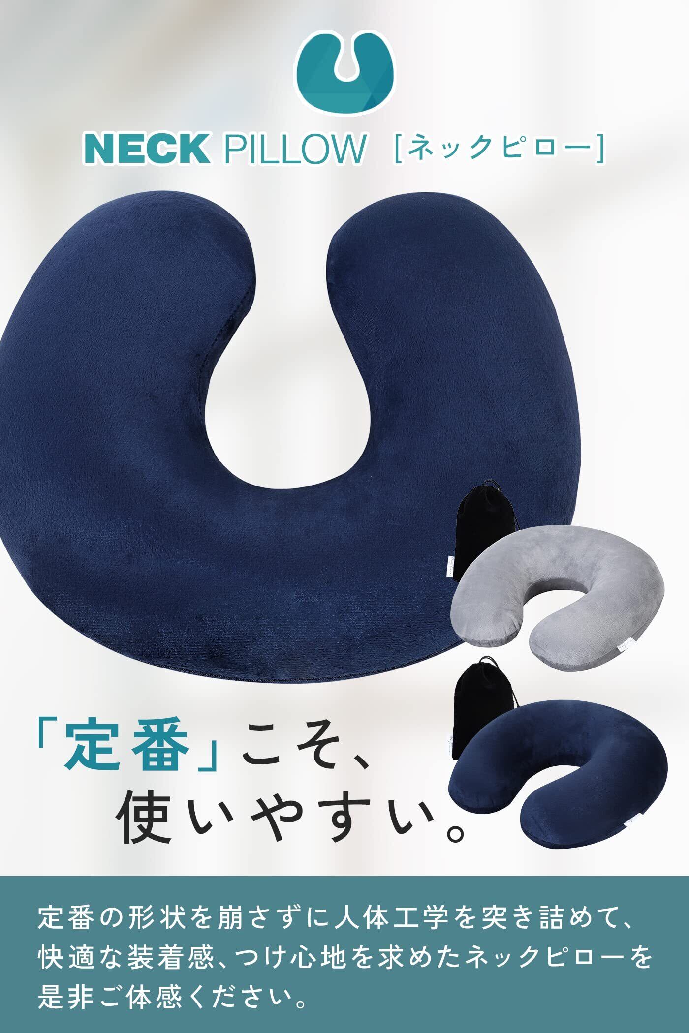 【2025最新】(ムジナ) mujina ネックピロー 洗えるカバー 収納ポーチ付き (ネイビー)