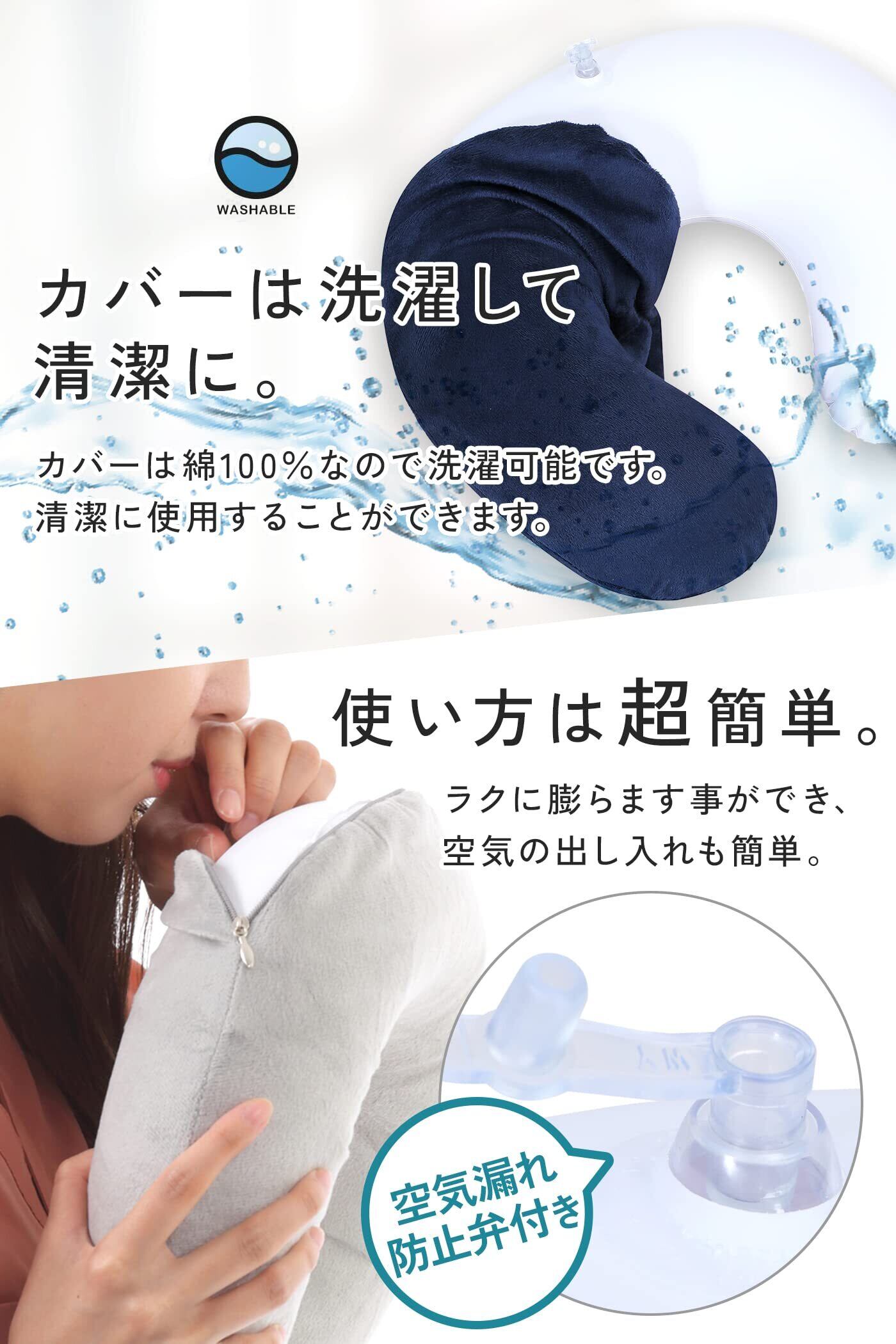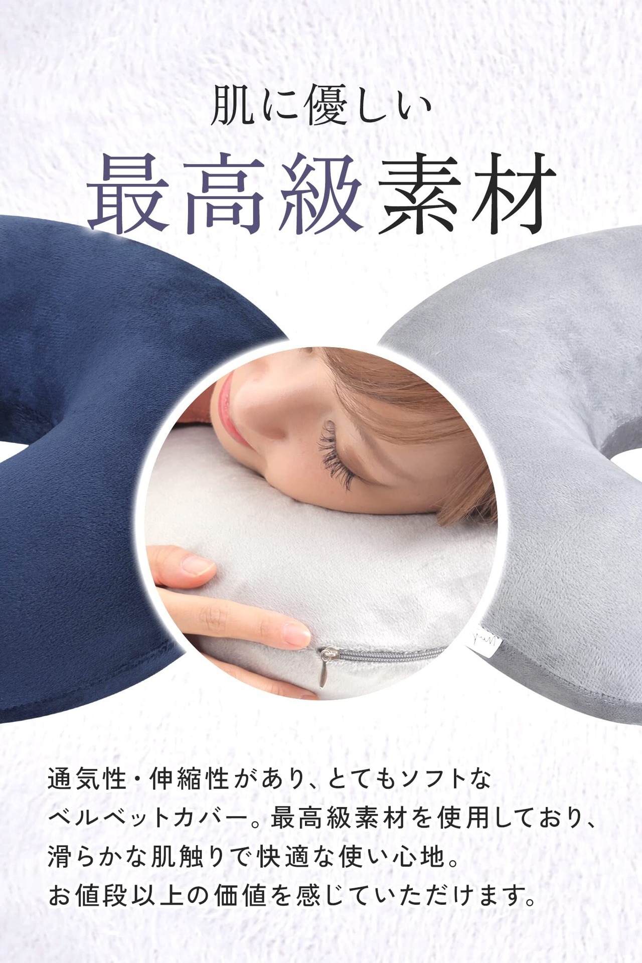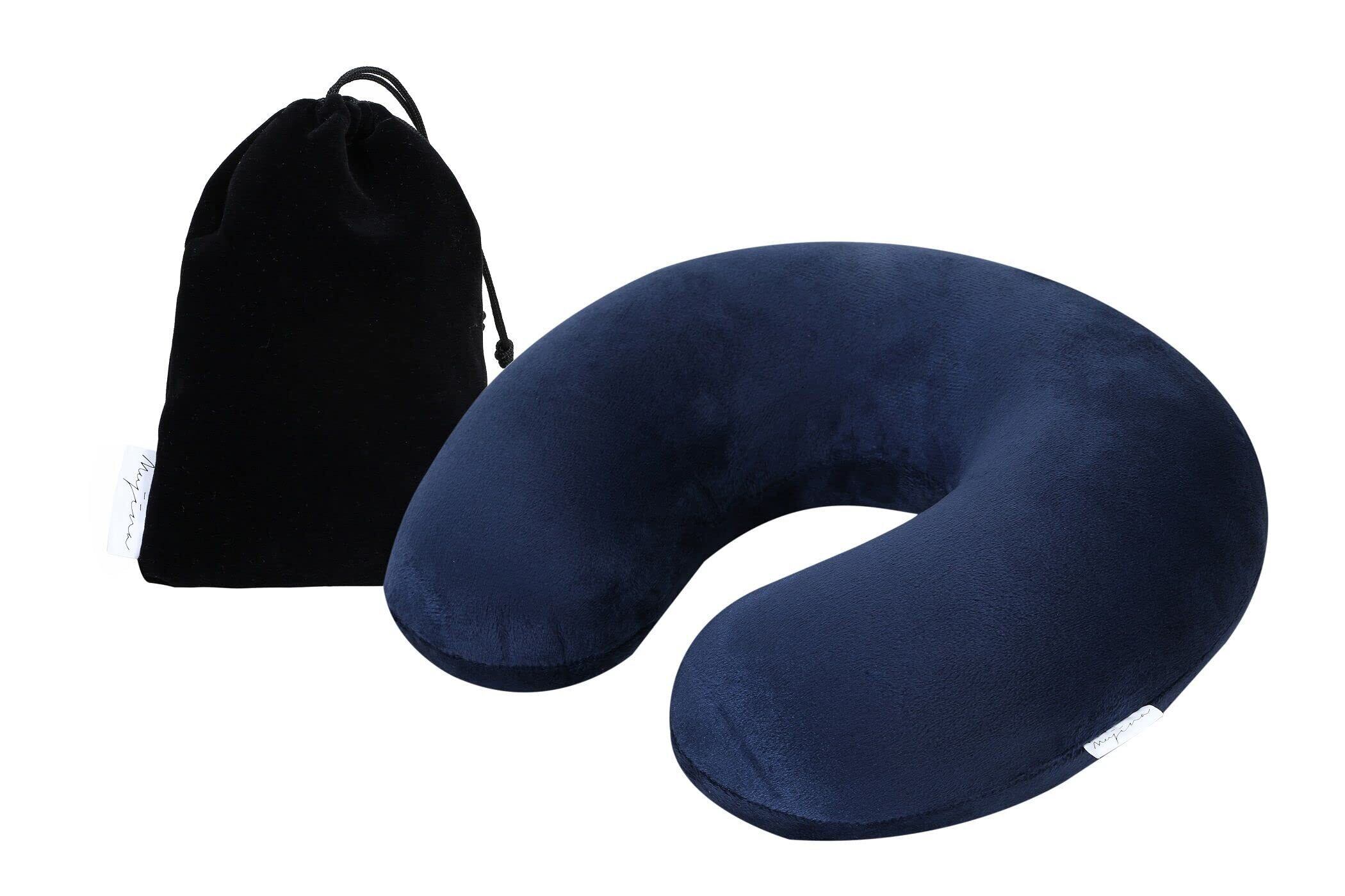 【2025最新】(ムジナ) mujina ネックピロー 洗えるカバー 収納ポーチ付き (ネイビー)