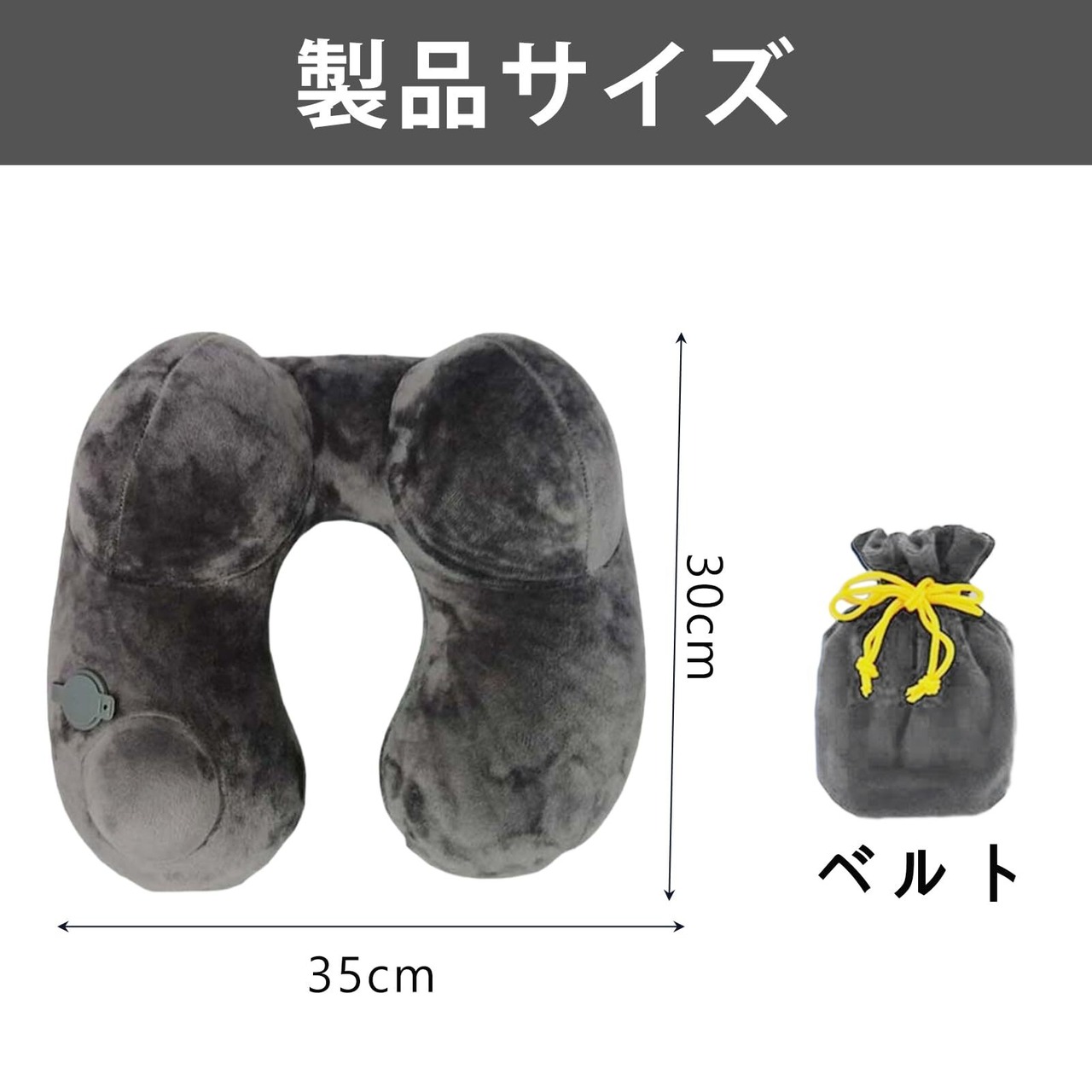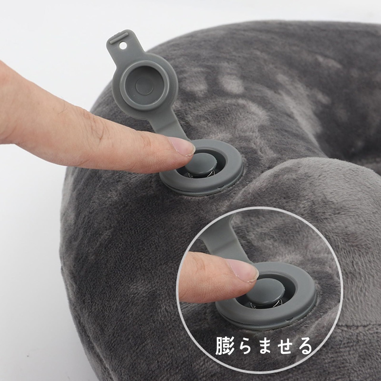 ネックピロー U型まくら 携帯枕 首枕 エアーピロー 枕 エアー 空気 低反発ネックピロー U型 オフィス デスクワーク 休憩中 ドライブ 旅行 軽量 旅行枕 洗える 新幹線 飛行機 バス 自宅 昼寝枕 収納バッグ付き (グレー)