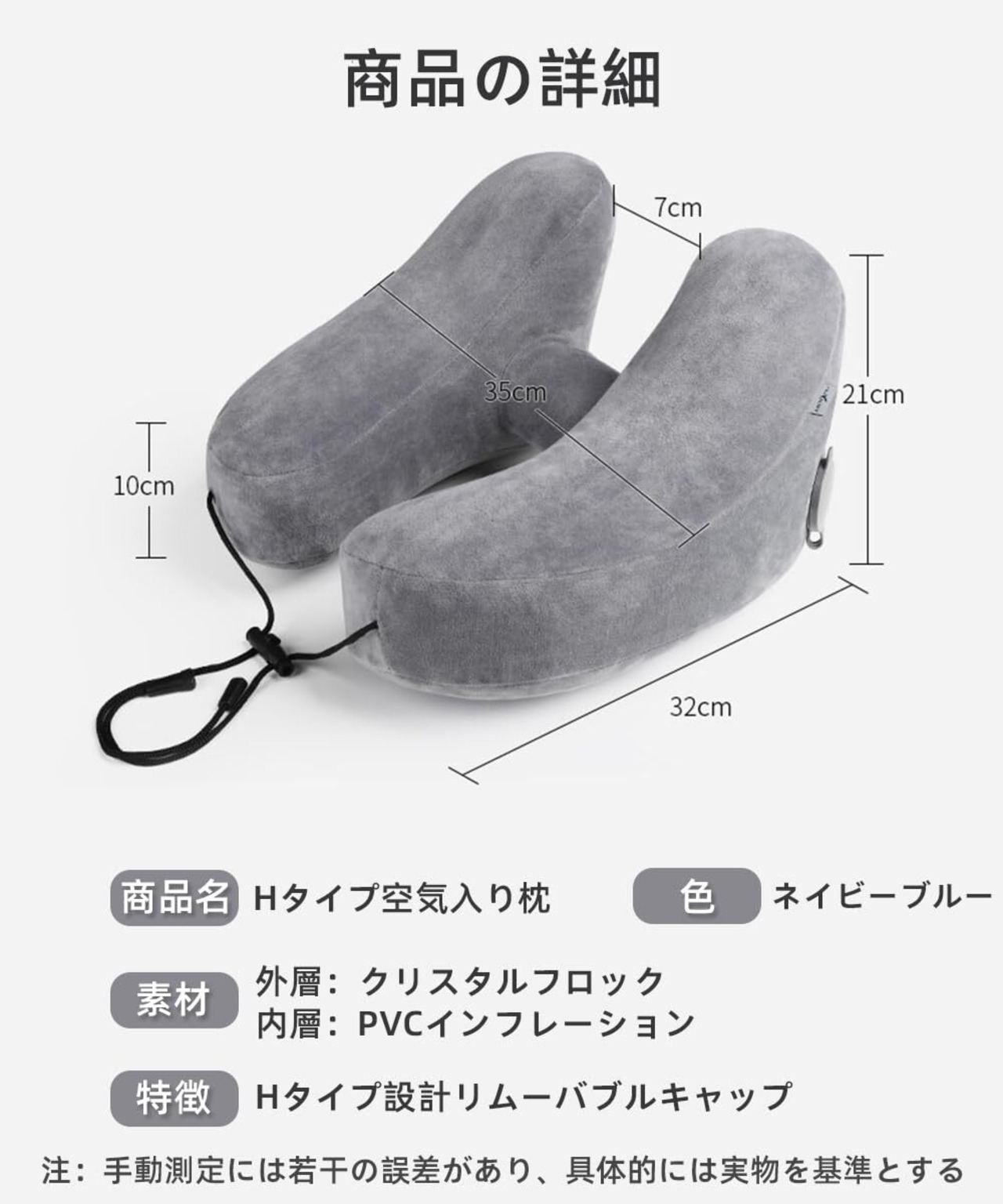 この高機能ネックピローは、疲労を軽減し、どんな場面でも快適さを提供します。人間工学に基づいたH型デザインにより、頭、首、肩を自然な姿勢でしっかりと支え、長時間の使用でも快適です。肌に優しいマイクロビロード生地を採用し、清潔感を保ちます。さらに、大口径の空気孔がついており、数回の息で簡単に膨らませることができ、使用後はすぐに空気を抜いてコンパクトに収納できます。洗濯可能なカバーでいつでも清潔を保ち、様々なシチュエーションでの使用にぴったりです。ご自宅用はもちろん、大切な人へのプレゼントにもおすすめします。サイズ:約35×32×21cmで、どなたでもご使用いただけるデザインです。