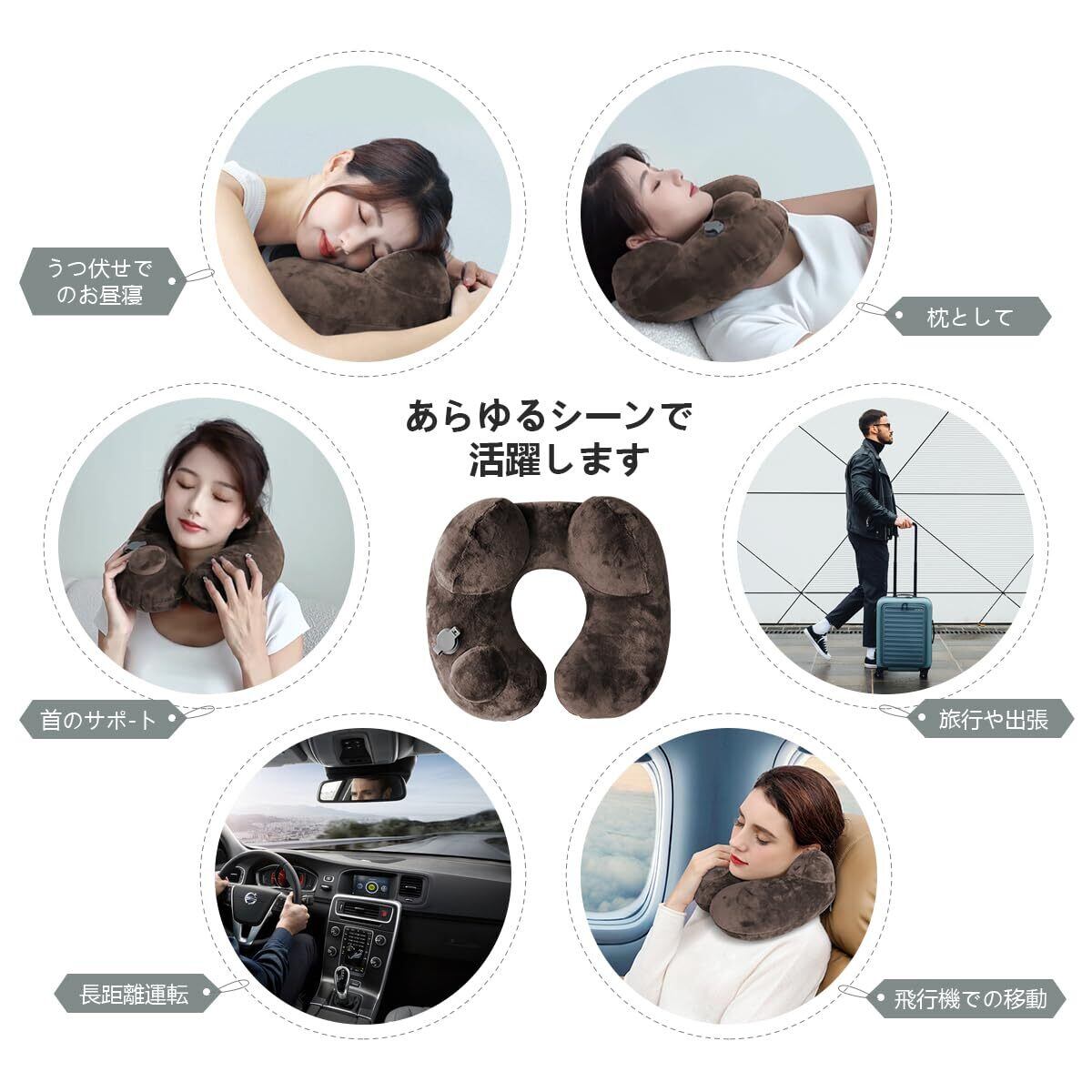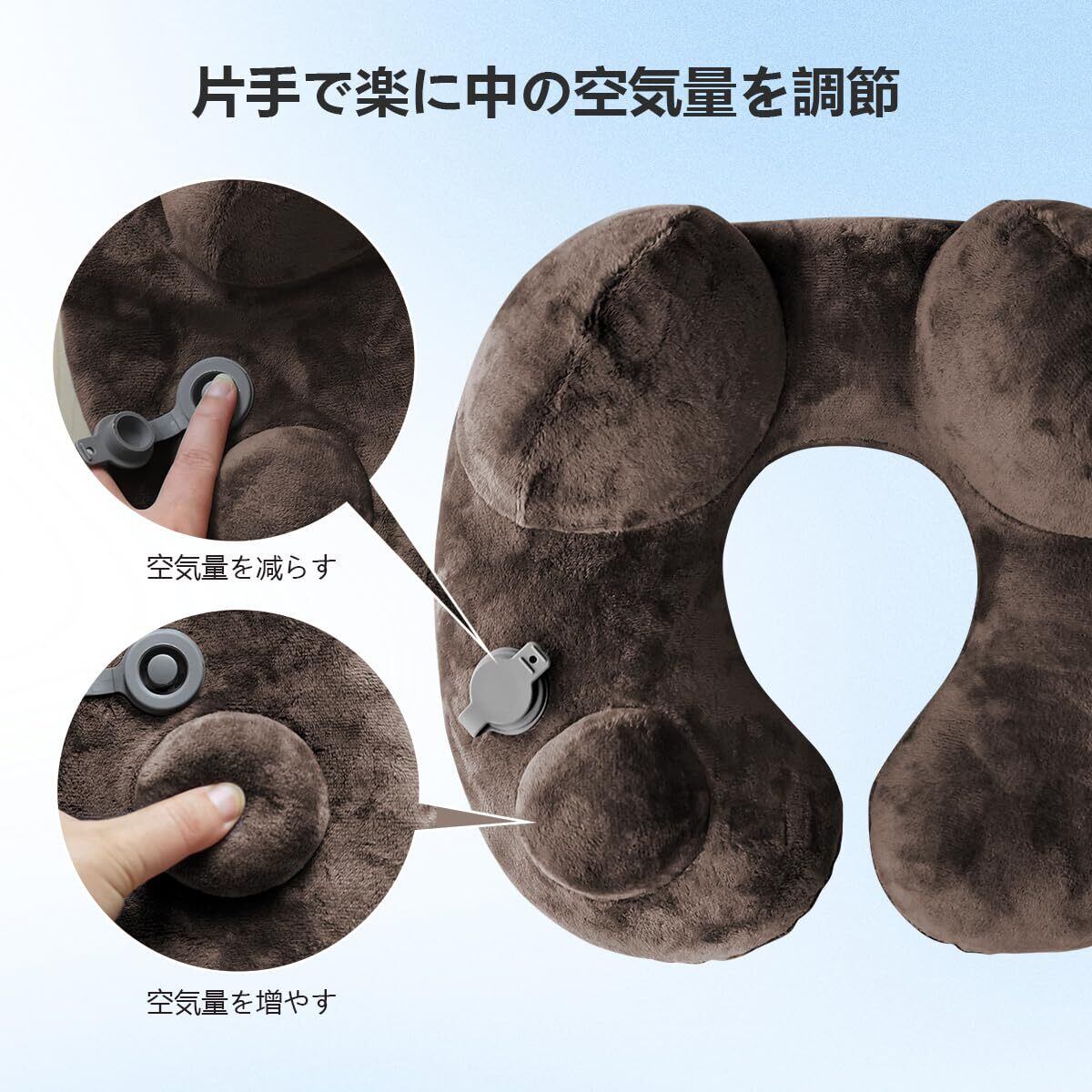 amifun 旅行用首枕 旅行パッド 旅行枕 快適睡眠 手動ポンプ式空気首枕 付属収納ポーチ&アイマスク 新幹線・飛行機シート首枕 洗濯可能 母の日・父の日ギフト ブラウン