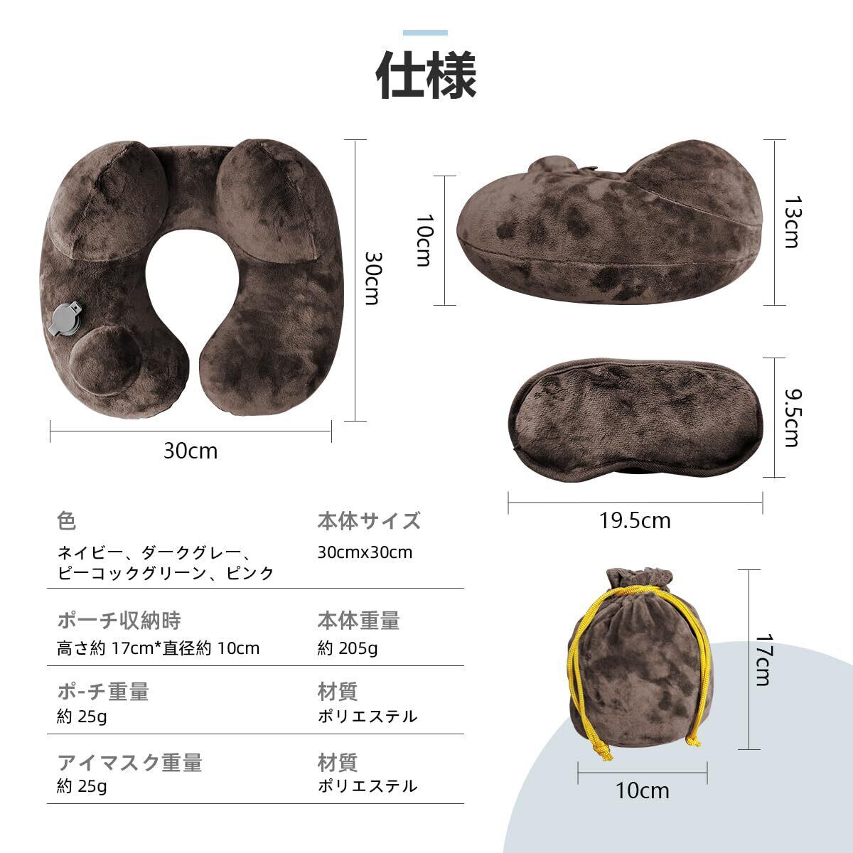 携帯に便利なコンパクト設計: 付属の収納ポーチに枕とアイマスクを収納でき、持ち運びも簡単です。